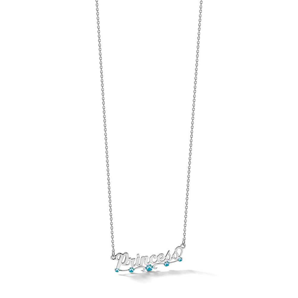 Sterling Silver/Rhodium-plated Epoxy Paw Print Name Plate
