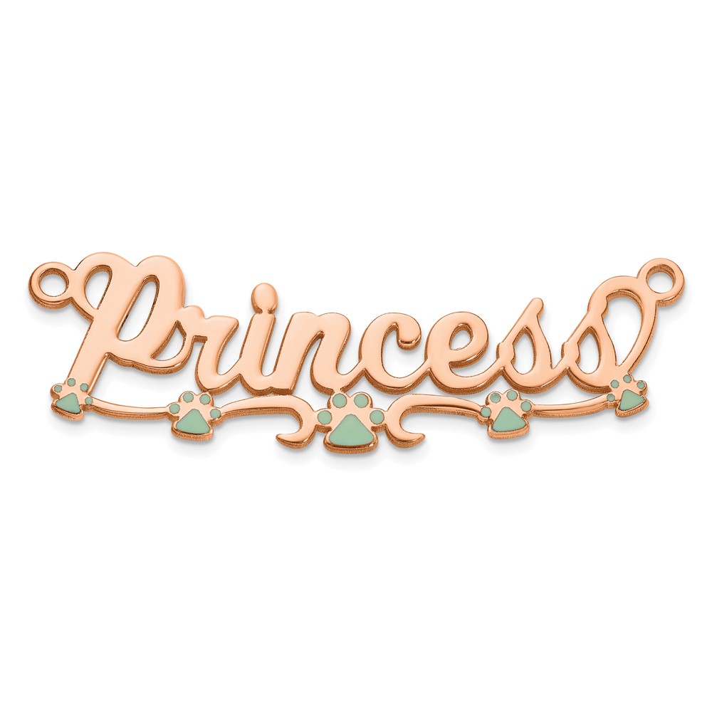 Sterling Silver/Rose-plated Epoxy Paw Print Name Plate