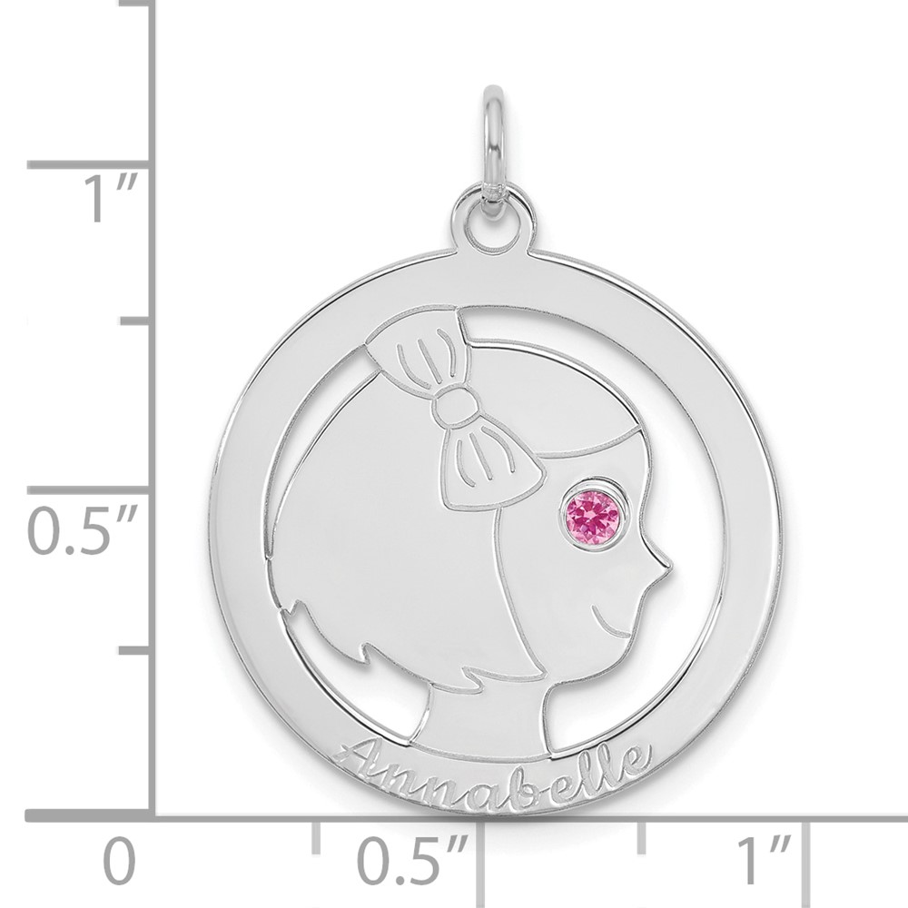 14k White Gold Girls Silhouette with Birthstone Charm