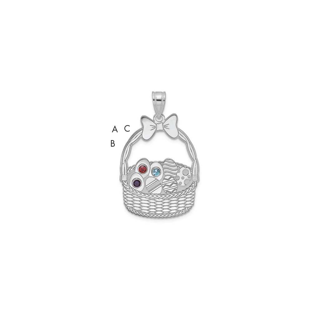 SSilver 3 Birthstone with SSilver Bezel Easter Basket Pendant