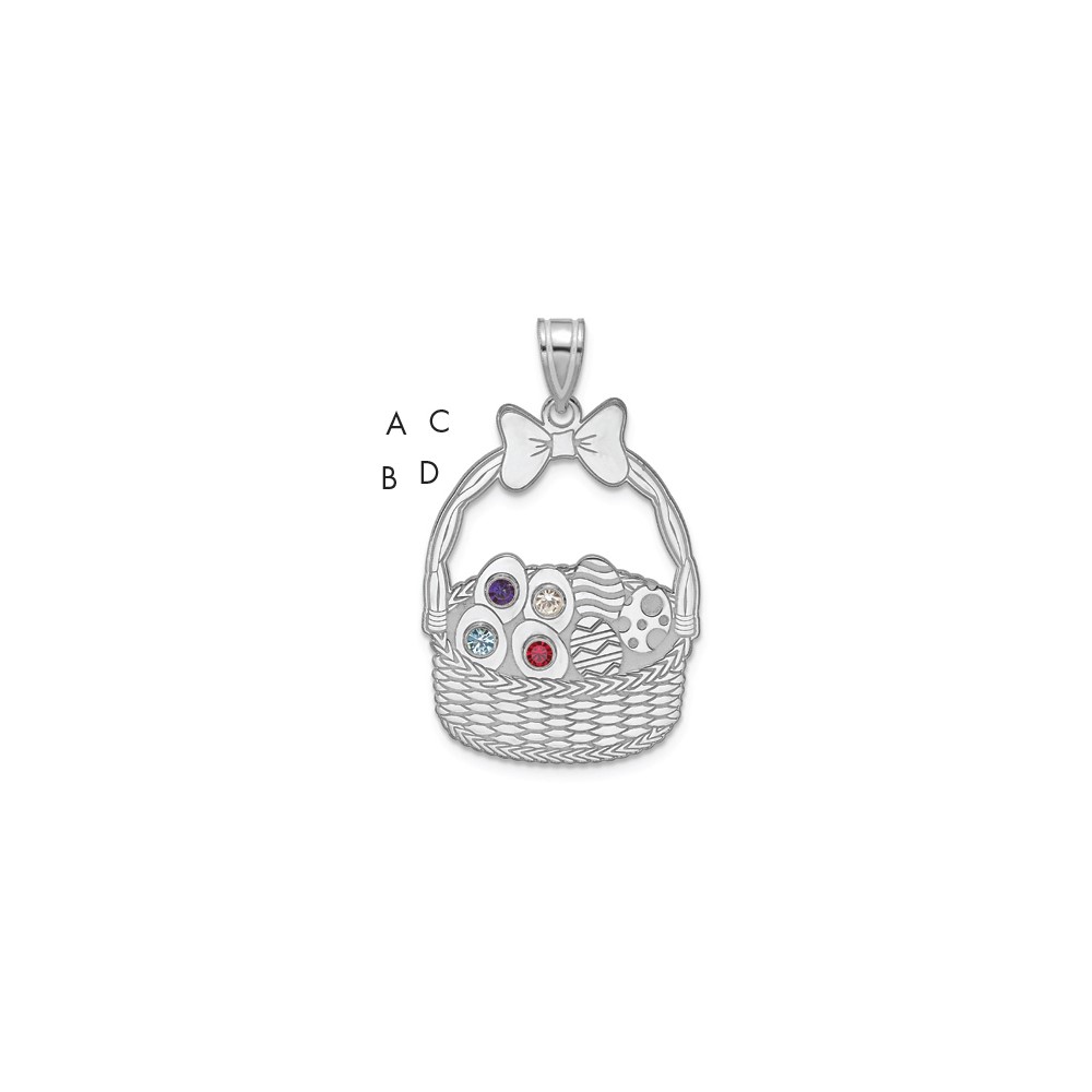 SSilver 4 Birthstone with SSilver Bezel Easter Basket Pendant
