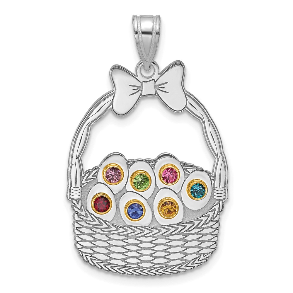 Sterling Silver 7 Birthstone with 14ky Bezel Easter Basket Pendant