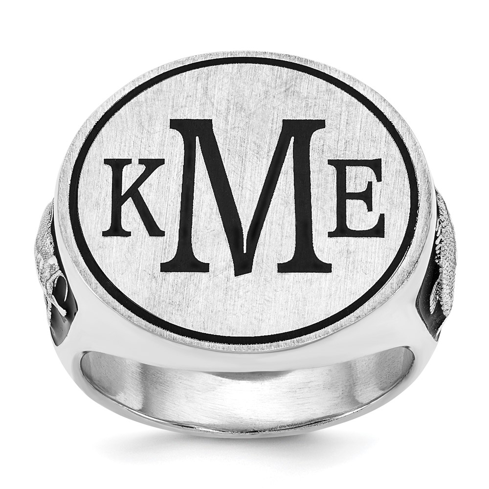 Sterling Silver/Rhod-plated Epoxy Bass Monogram Ring