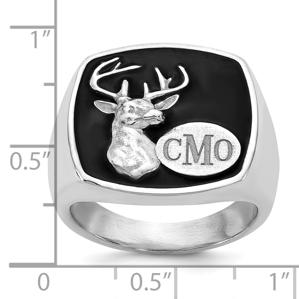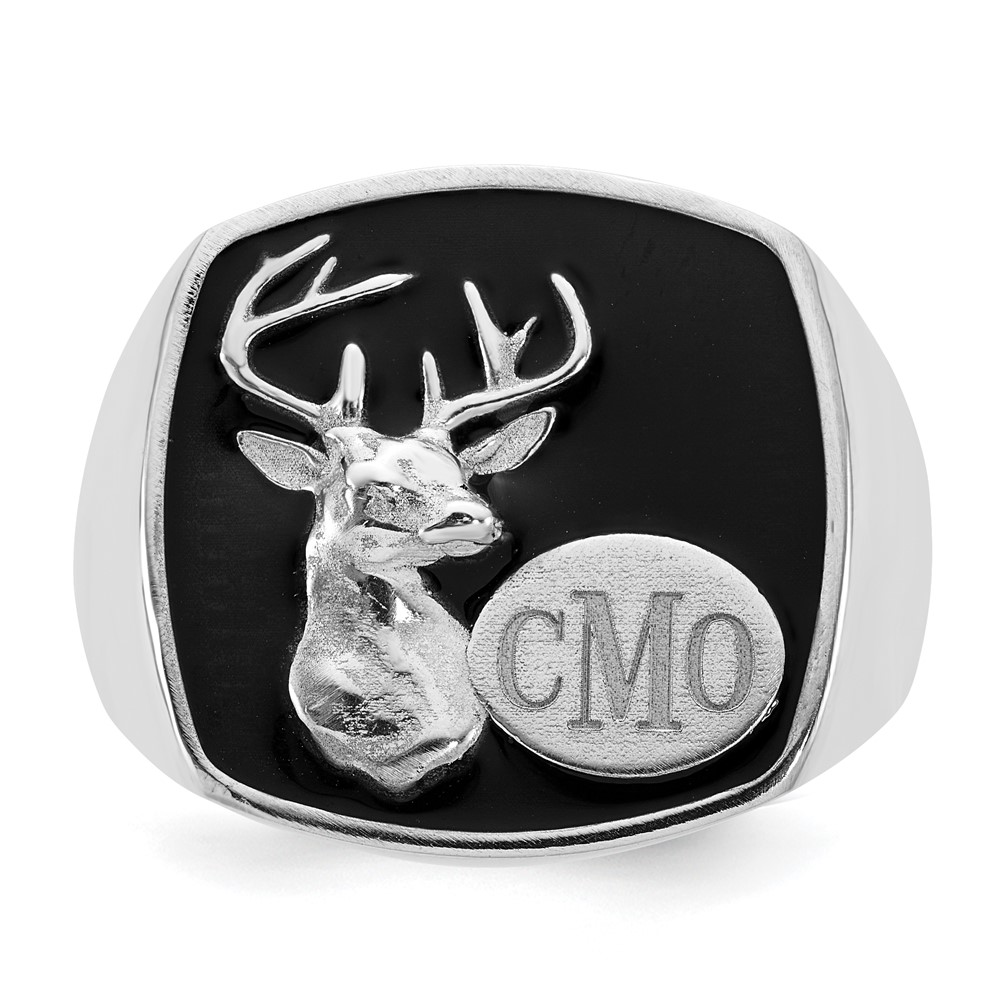 Sterling Silver/Rhod-plated Epoxy Monogram Deer Cushion Ring