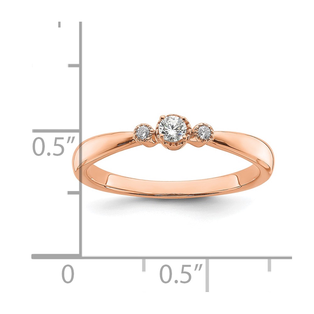 14k Rose Gold Beaded Edge Petite 3-Stone 1/15 carat Round Diamond Complete Promise/Engagement Ring