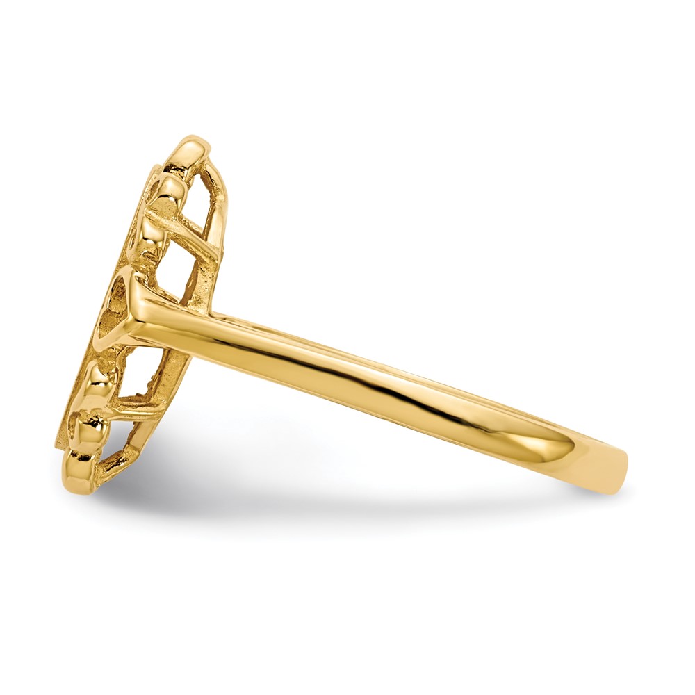 14k Holds 1-1.0mm Diamond 6.0x11.5mm Oval Open Back Scalloped Edge Signet Ring Mounting