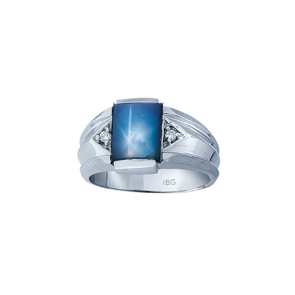 Men's Yellow Gold Created Blue Star Sapphire and Diamond Accent Ring Mounti