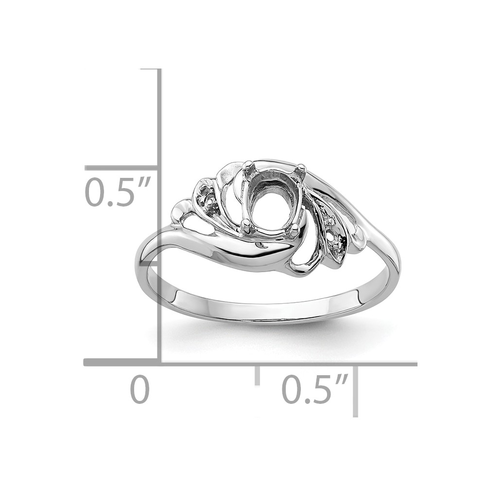 14k White Gold Polished Holds 2-1.1mm Diamond and 1-6x4 Oval Gemstone Ring Mounting