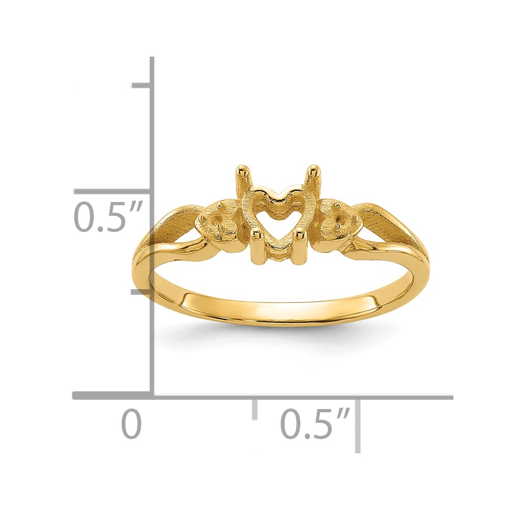 14k Polished Holds 2-1.3mm Round Diamonds and 5mm Heart Gemstone Ring Mounting