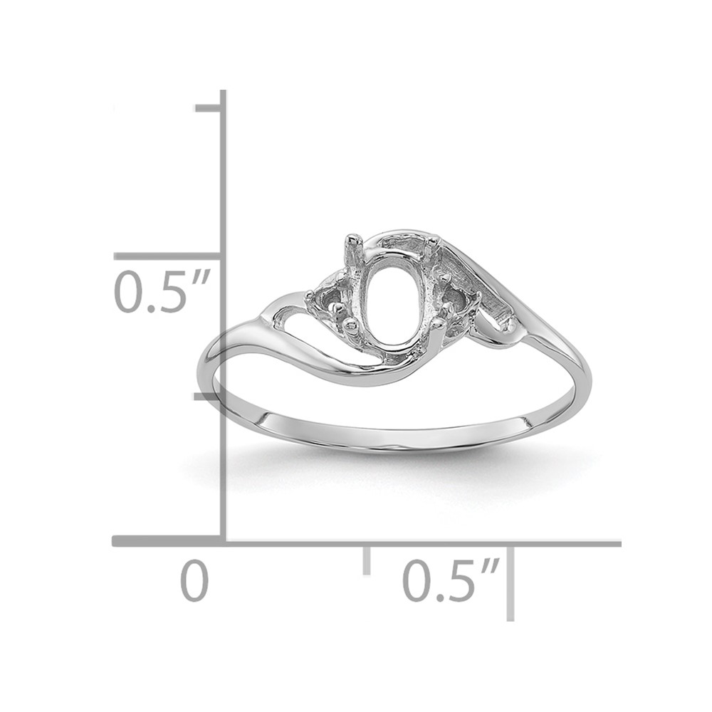 14k White Gold Holds 2-1.6mm Diamond and 1-6x4mm Oval Gemstone Ring Mounting