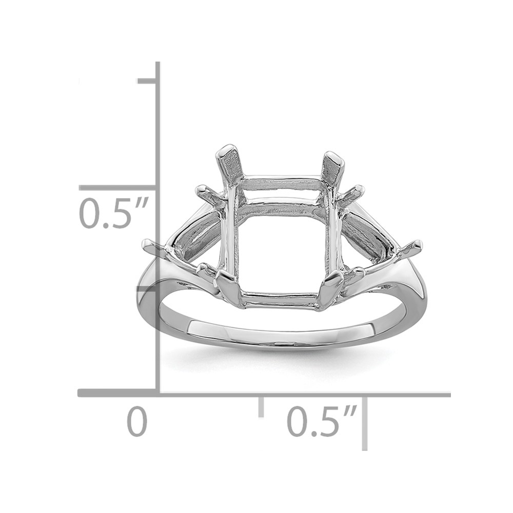 14k White Gold Holds 1-9x7mm Emerald and 2-5mm Trillion Gemstone Ring Mounting