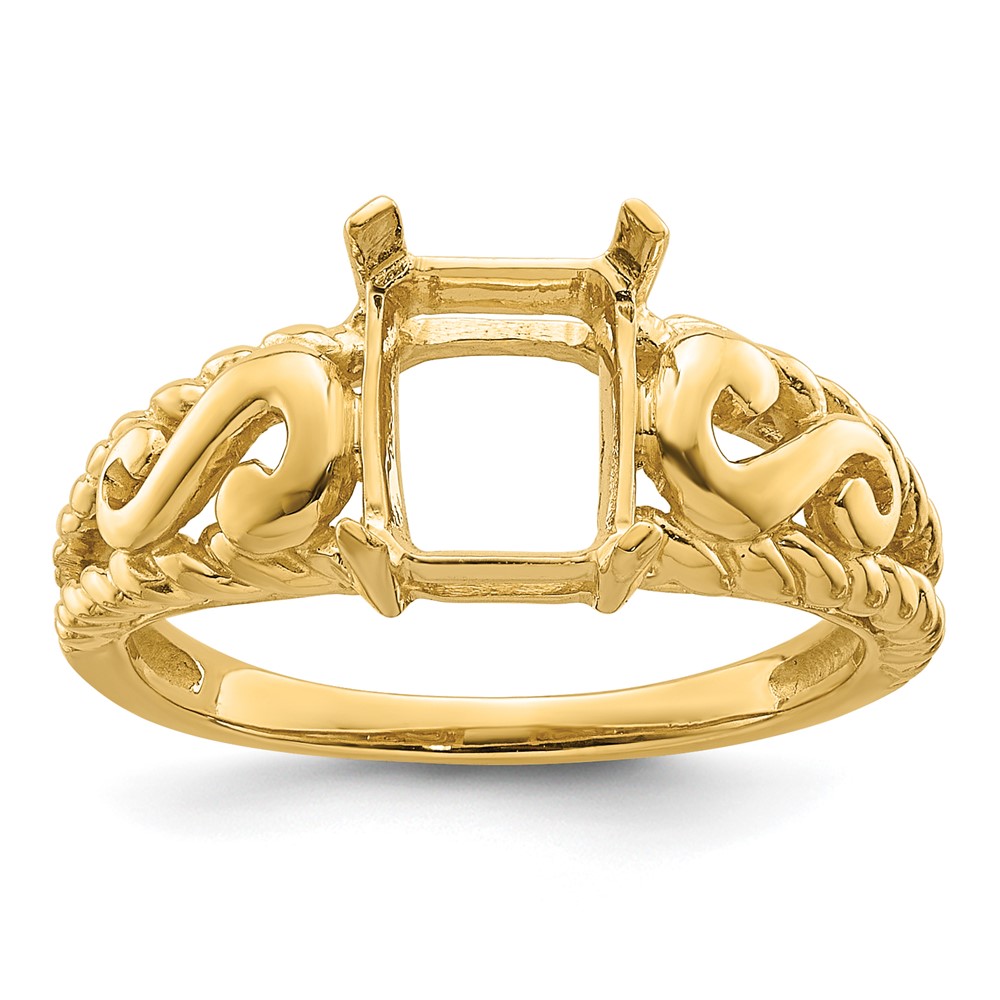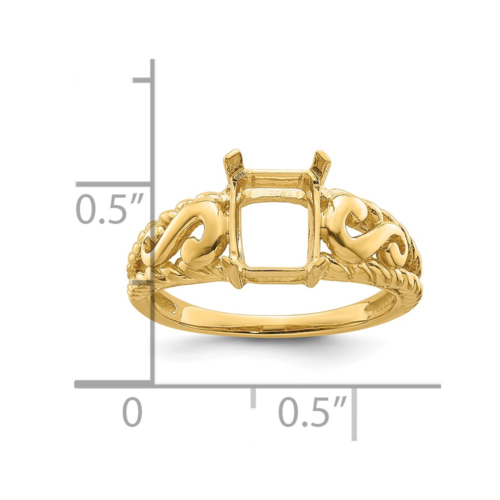 14k Holds 8x6mm Emerald-cut Gemstone Ring Mounting