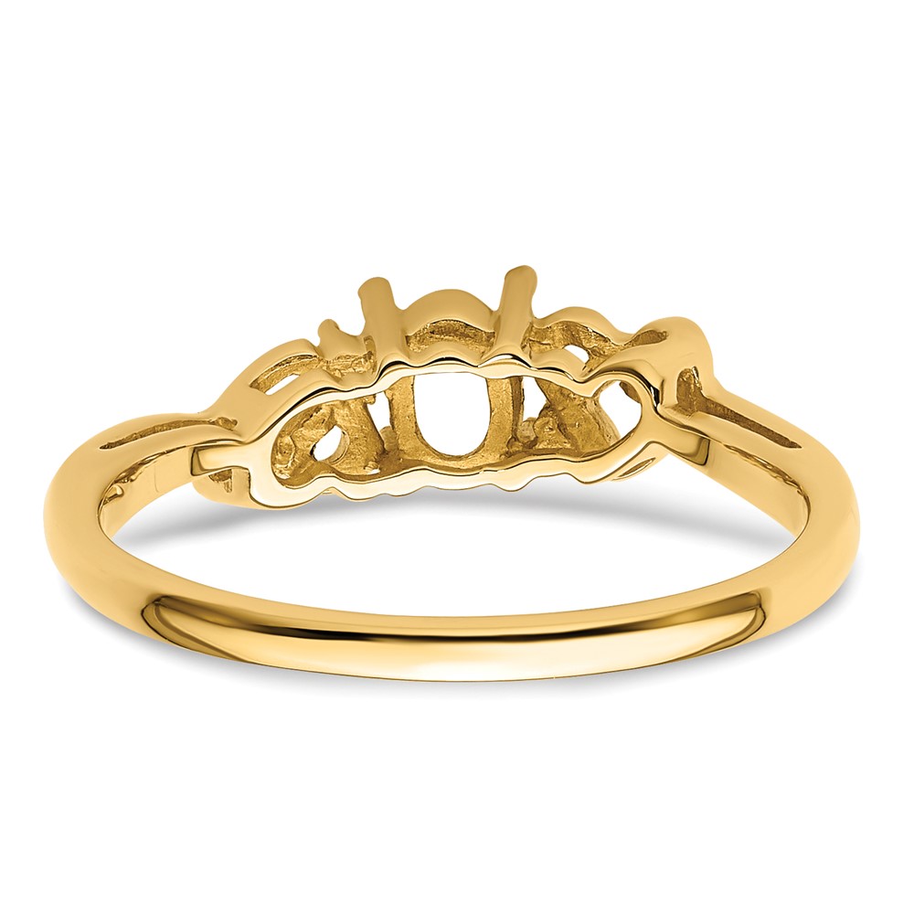 14k Holds 2-1.2mm Round and 1-6x4mm Oval Gemstone Ring Mounting