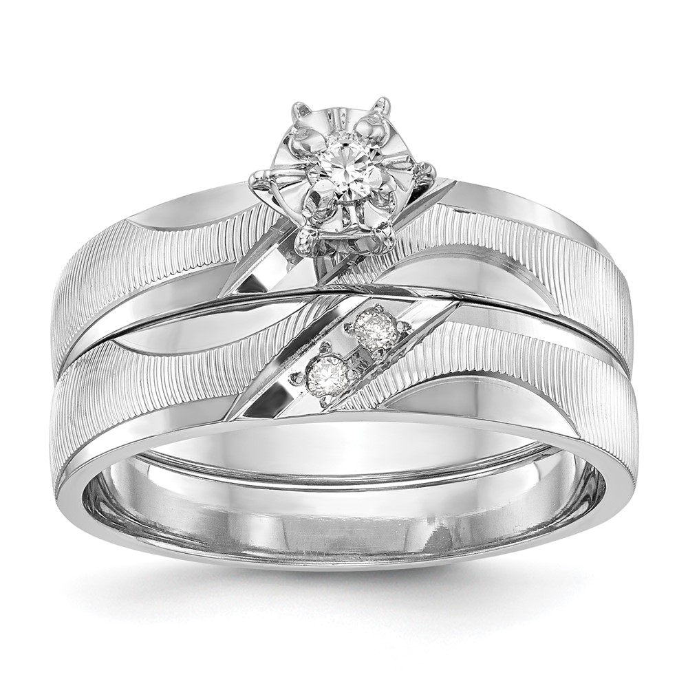 14k and Rhodium AA Quality 1/20 carat Diamond Trio Complete Engagement Ring
