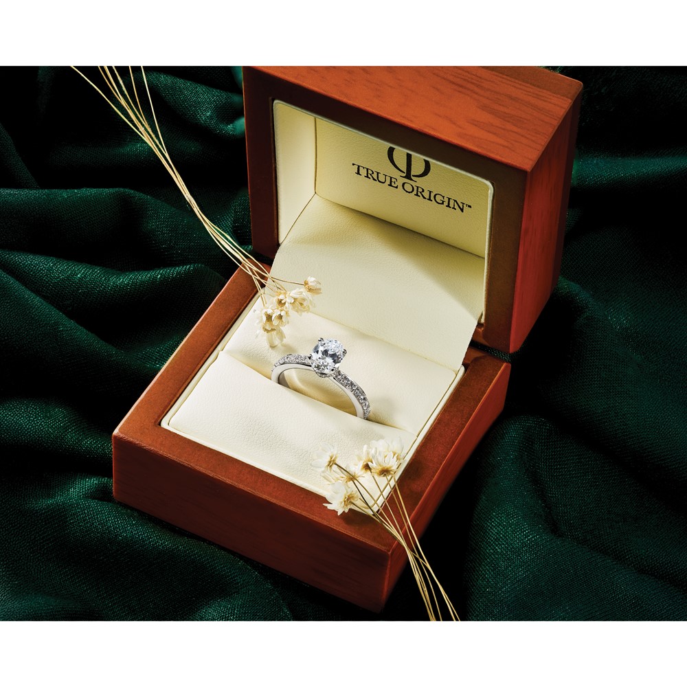 True Origin 14K White Gold 1/4 carat Lab Grown Diamond VS+ F+ Semi-Mount Oval Engagement Ring