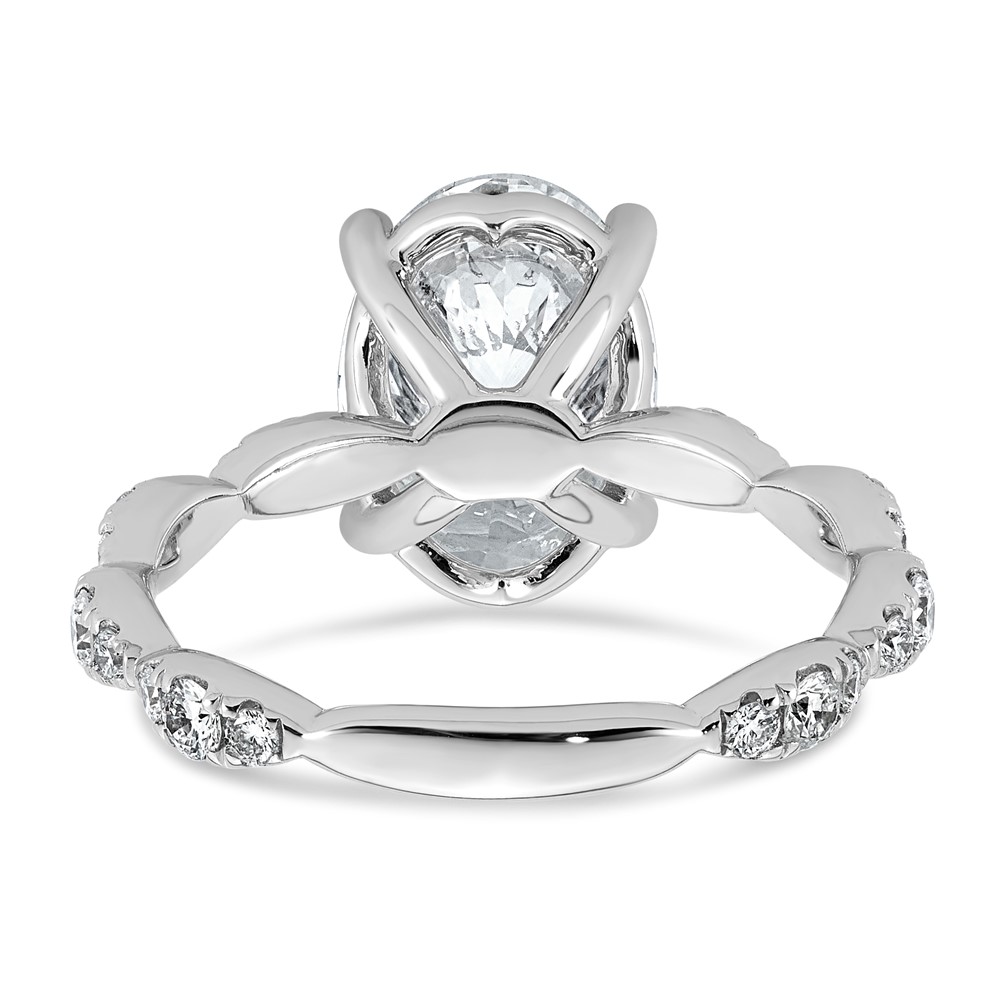 14kw 3 1/2ct Certified Oval Center Lab Grown Diamond VS+ F+ Comp Ring