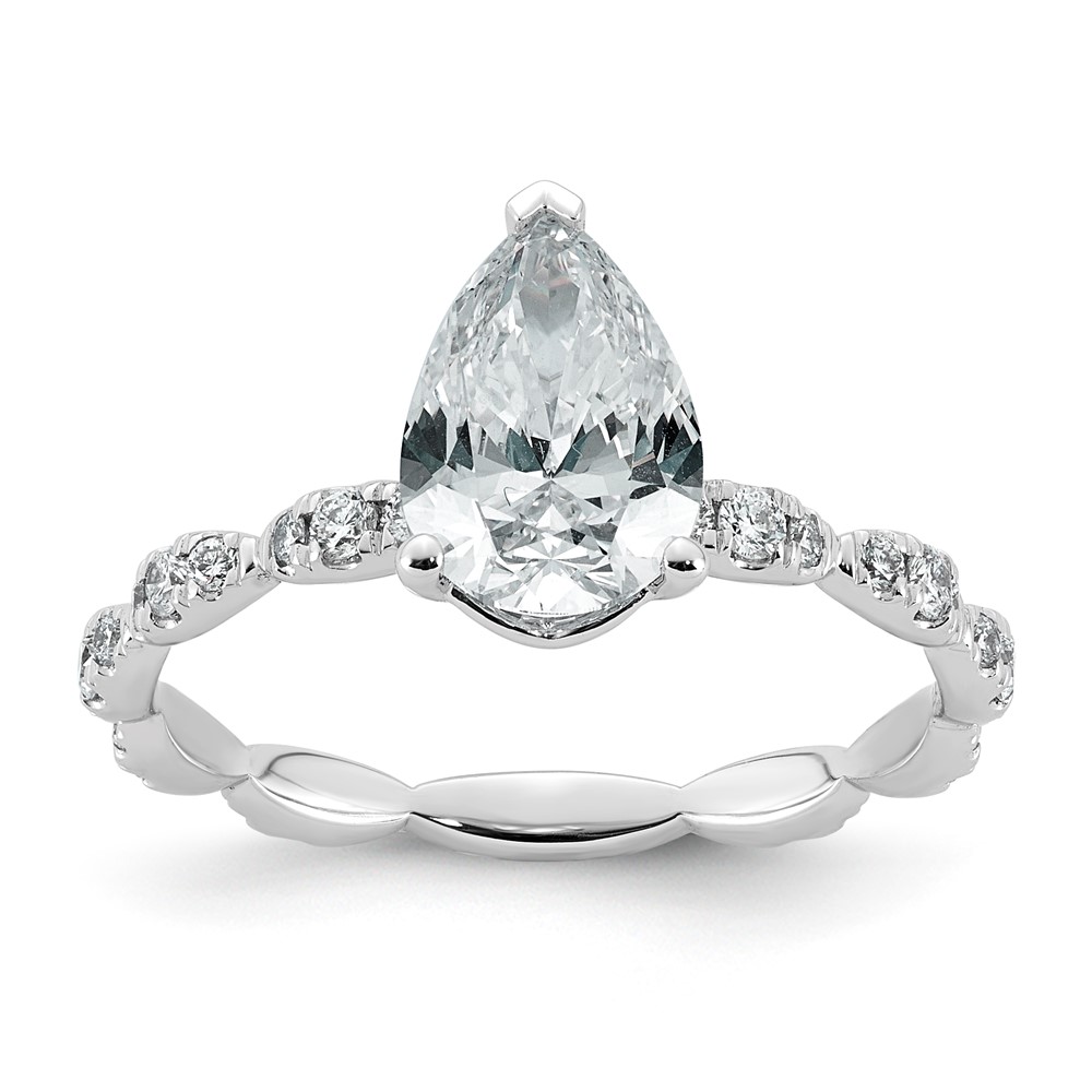 14kw 1 7/8ct Certified Pear Center Lab Grown Diamond VS+ F+ Comp Ring