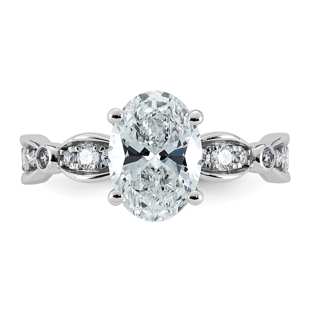 14kw 2 1/4ct Cert Oval Center Lab Grown Diamond VS+ F+ Comp Ring