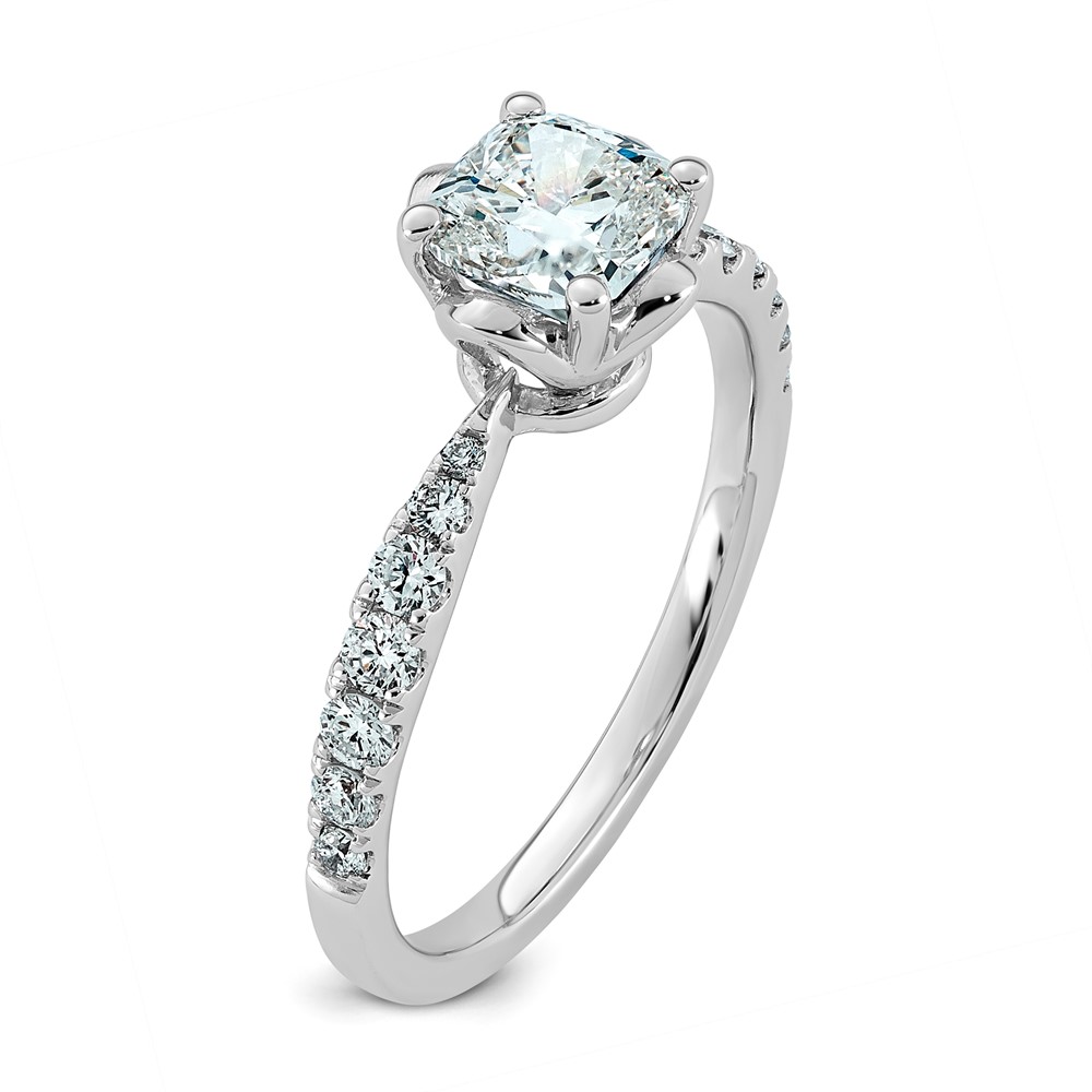14kw 1 1/3ct Cert Cushion Center Lab Grown Dia VS+ F+ 4-Prong Comp Ring