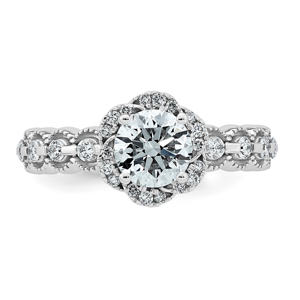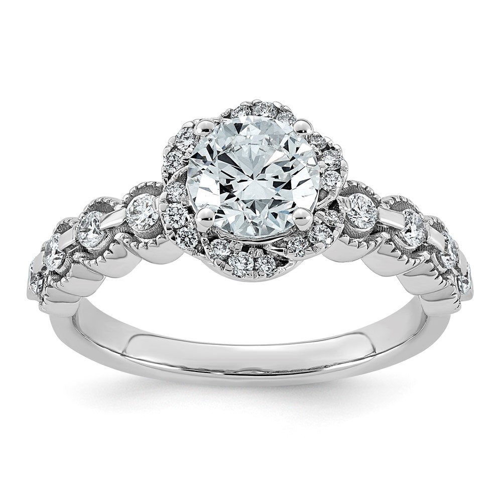 14kw 1 1/3ct Cert Round Center Lab Grown Dia VS+ F+ Floral Halo Comp Ring