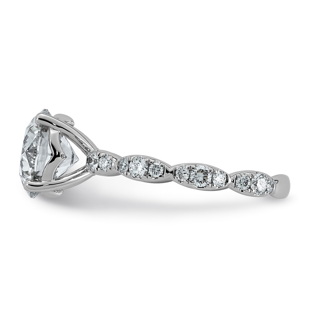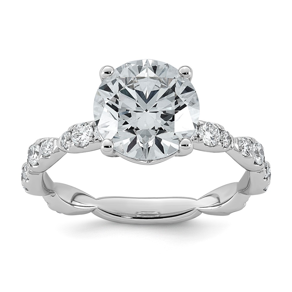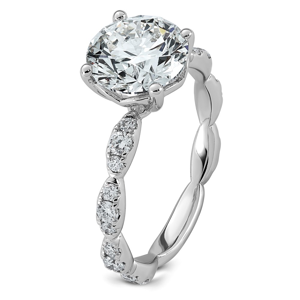 14k White Gold (Holds 2 carat (8.2mm) Round Center) 3/8 carat Diamond Semi-Mount Engagement Ring