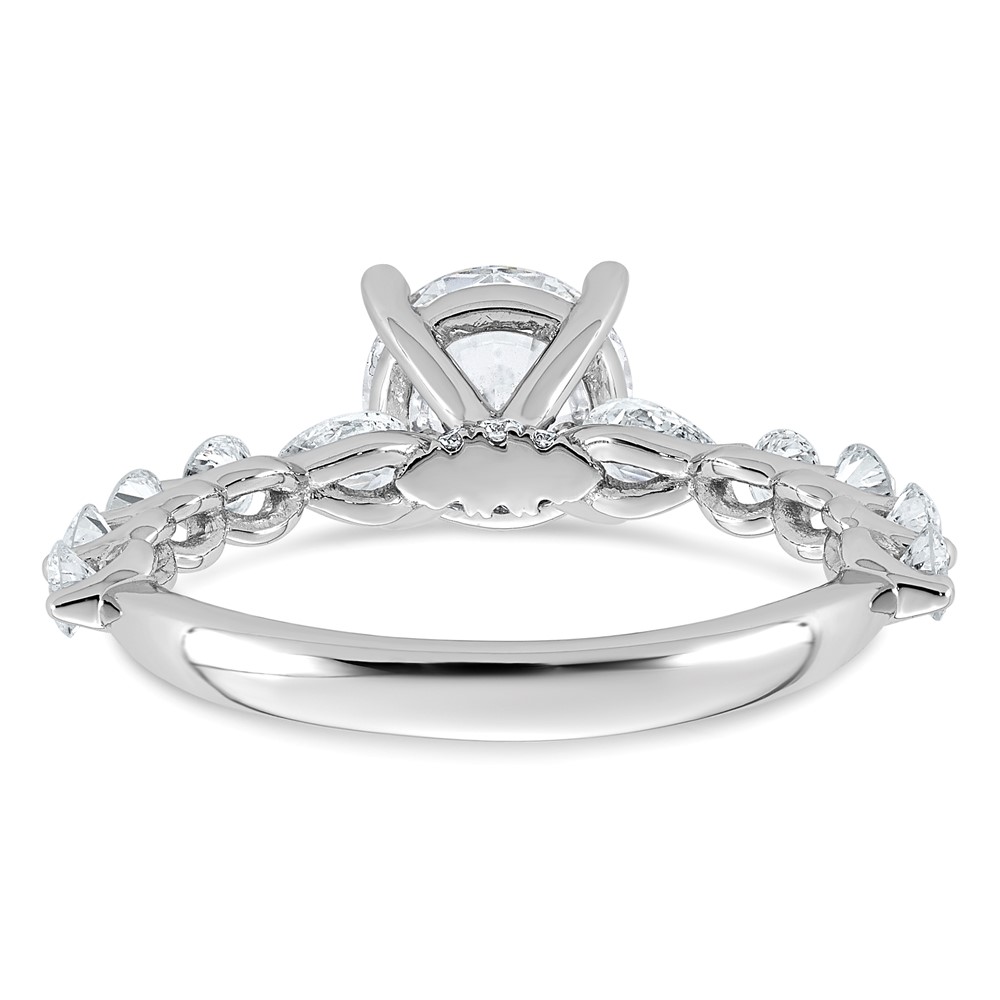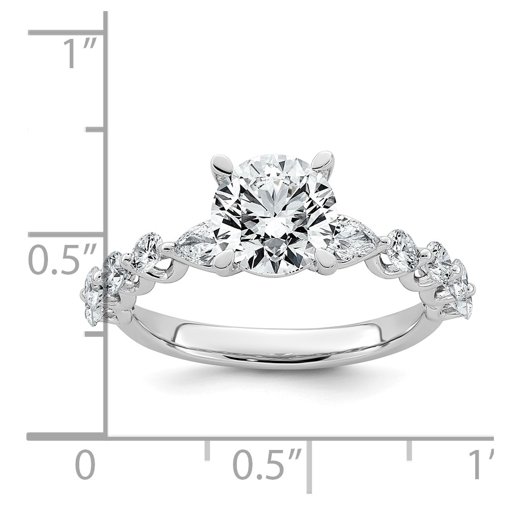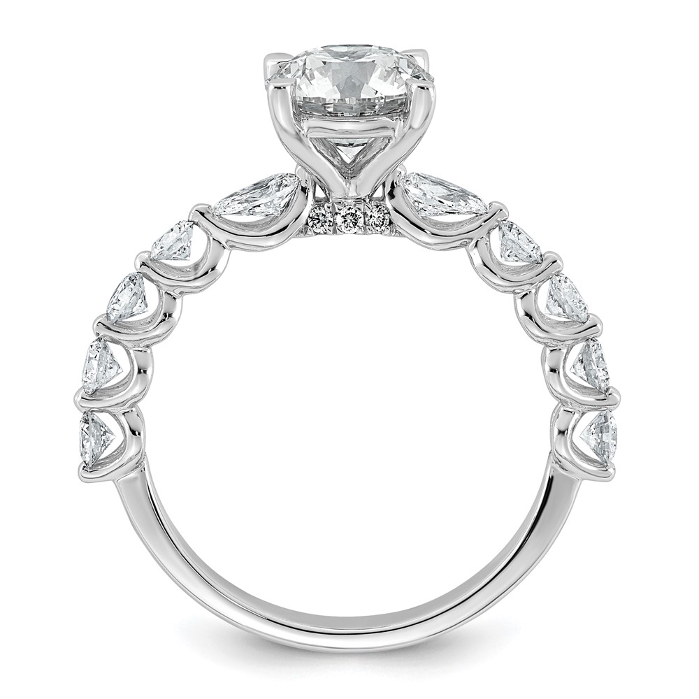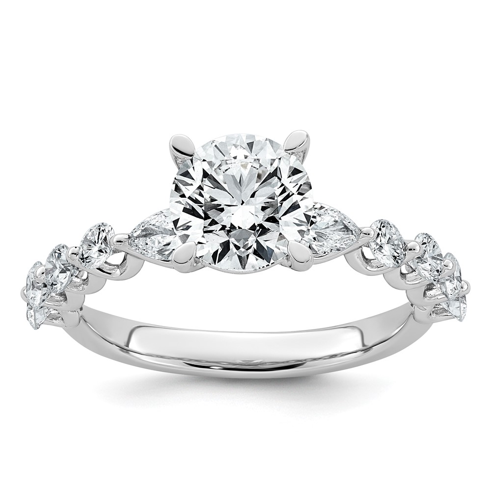 14k White Gold 2 1/4 carat Certified Lab Grown Diamond VS+ F+ Round Center with Round & Pear Sides Complete Engagement Ring