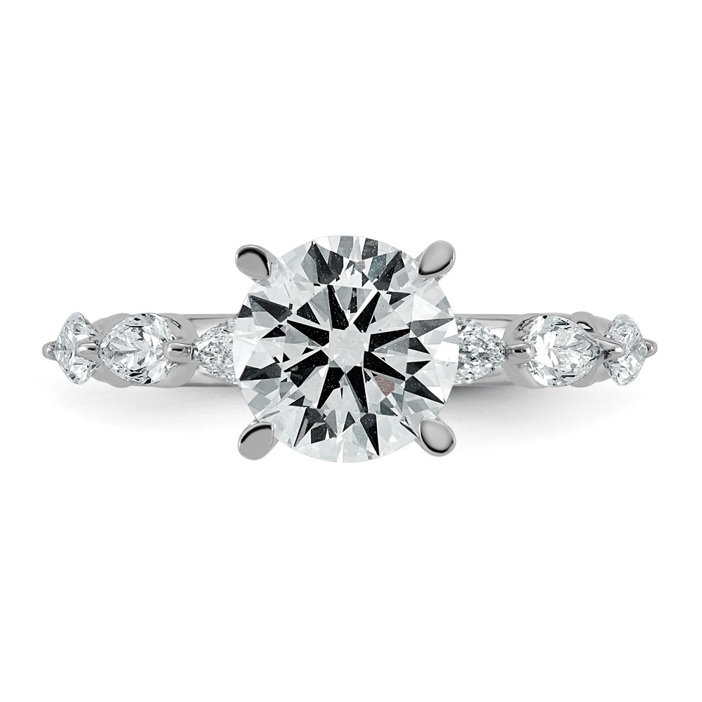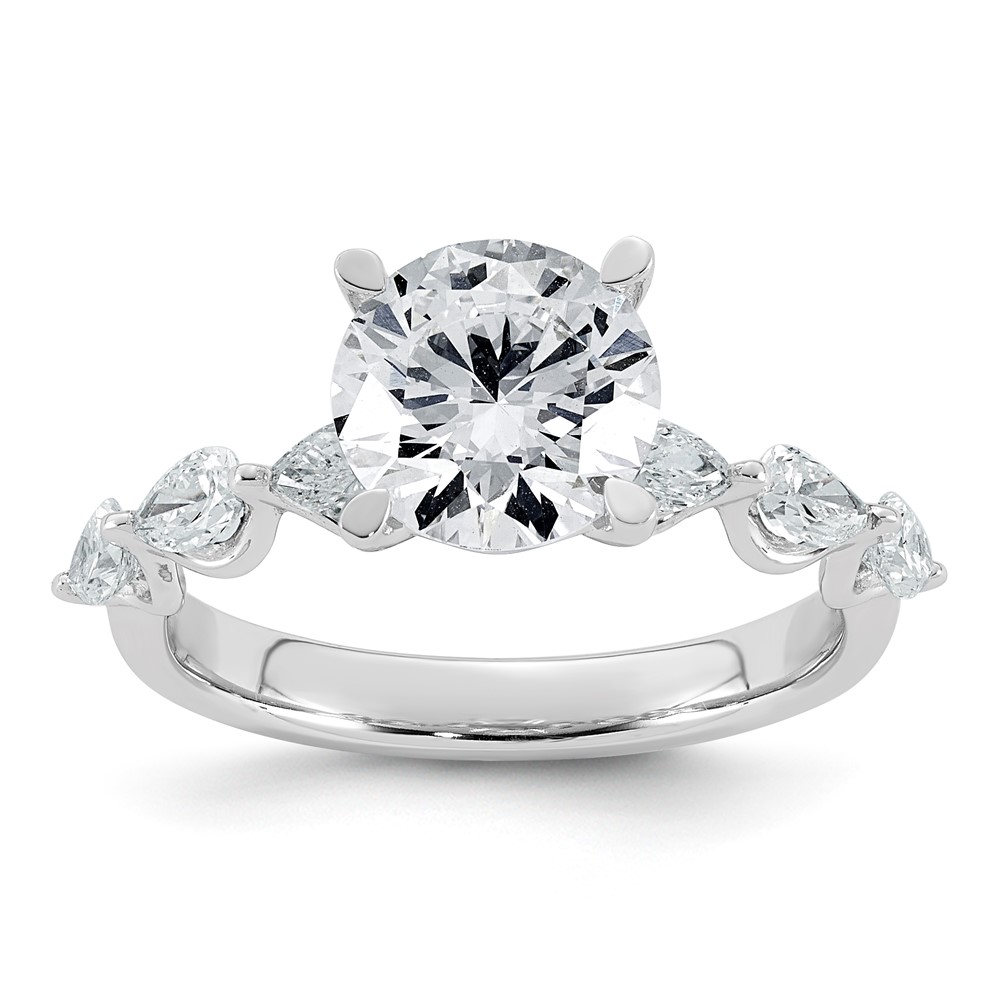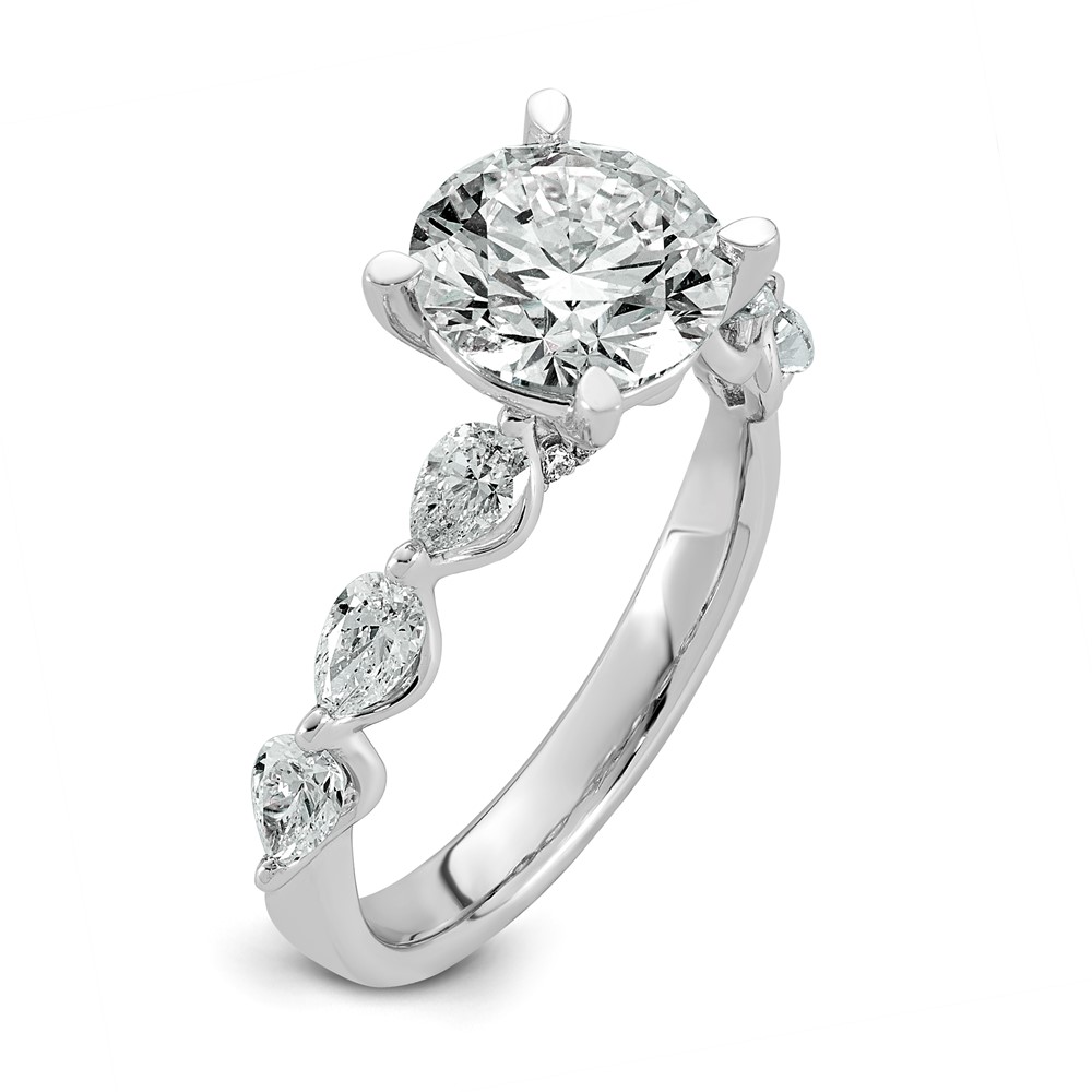 14k White Gold 2 3/4 carat Certified Lab Grown Diamond VS+ F+ Round Center with Pear Sides Complete Engagement Ring