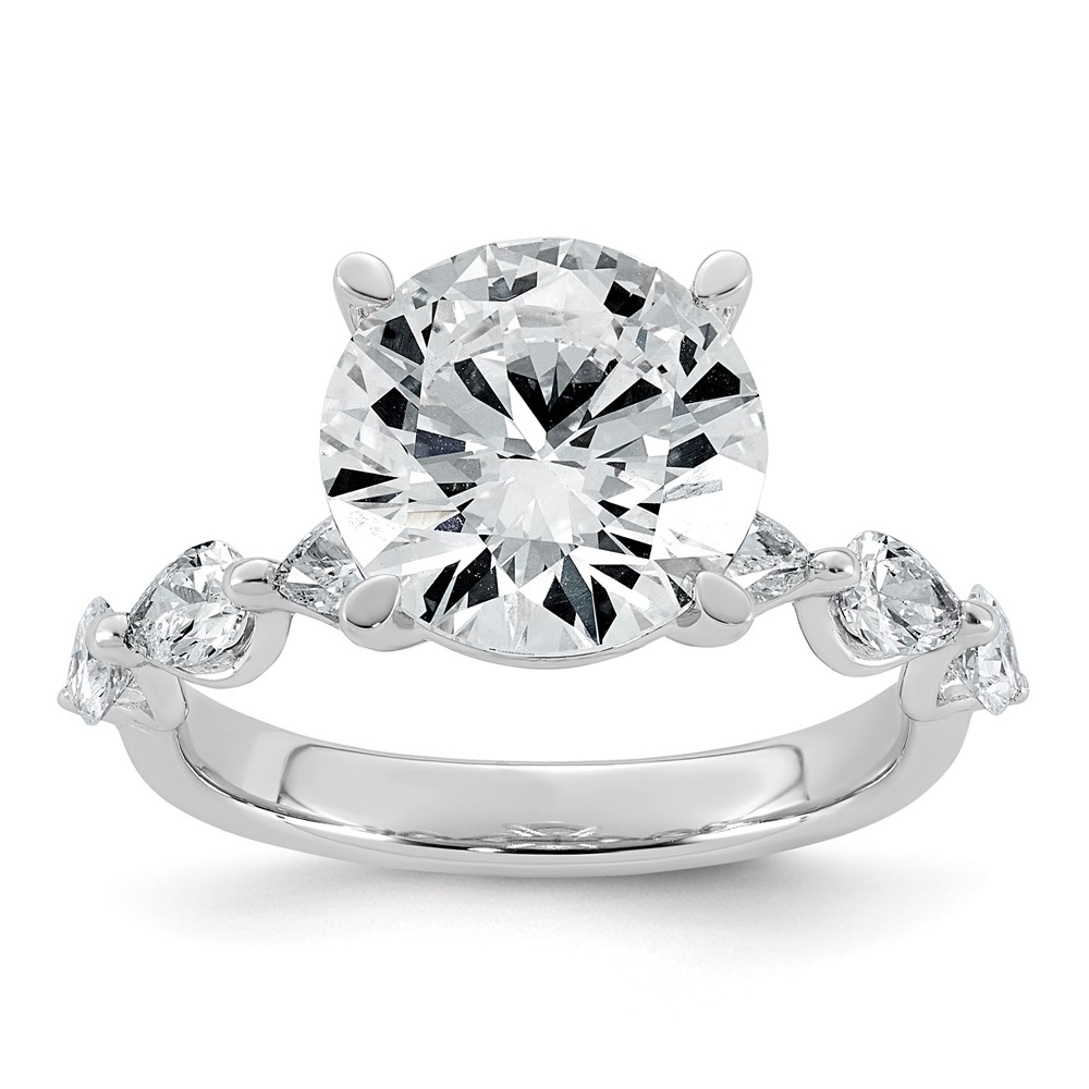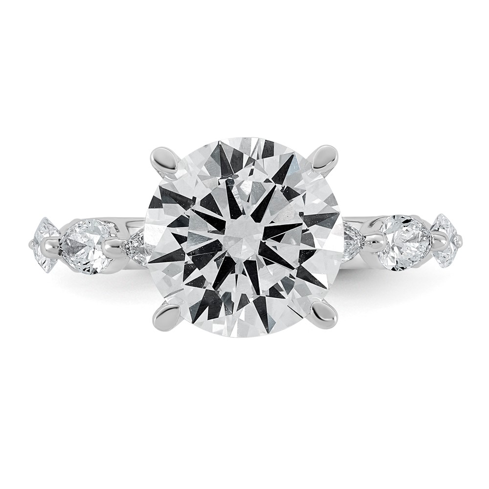 14k White Gold 4 7/8 carat Certified Lab Grown Diamond VS+ F+ Round Center with Pear Sides Complete Engagement Ring