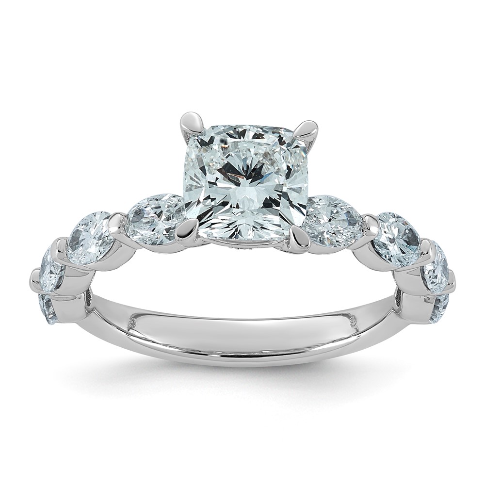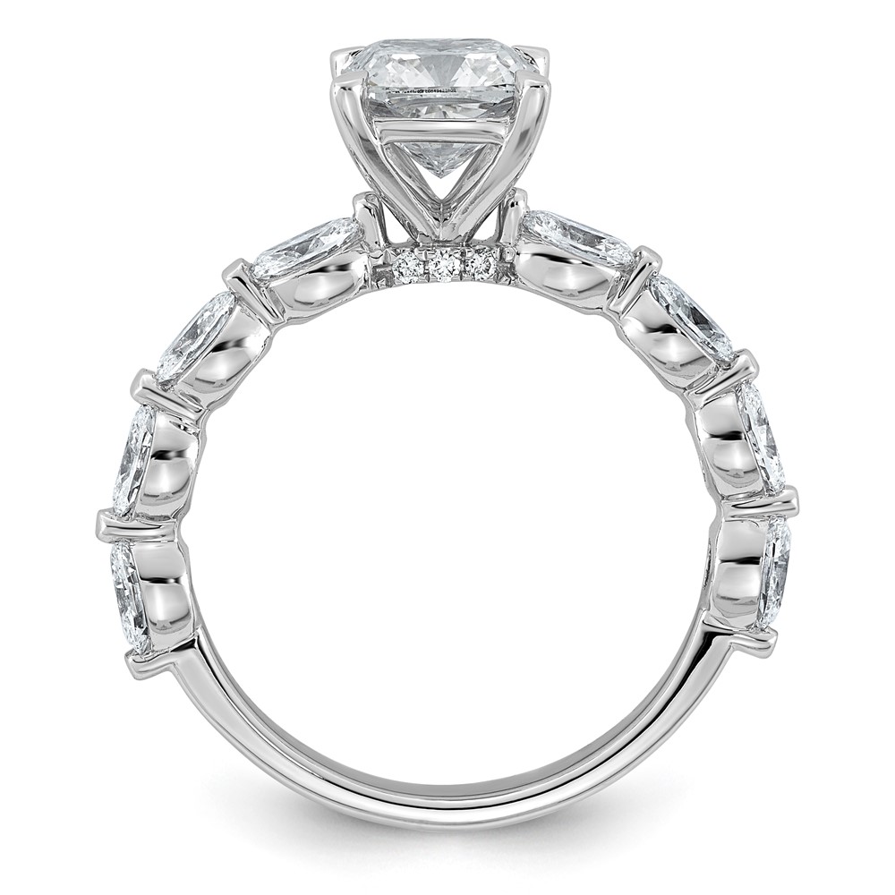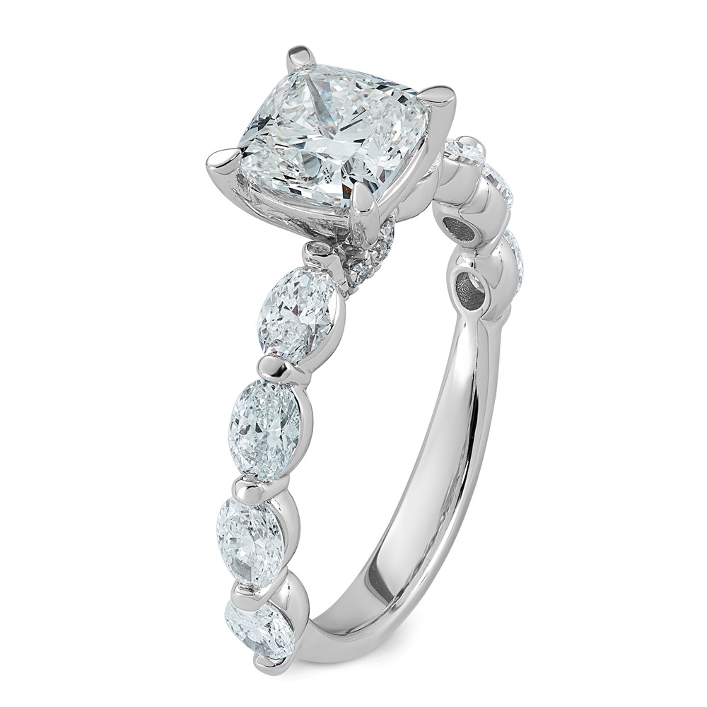 14kw 2 5/8ct Cert Cushion Ctr LabGrown Dia VS+ F+ w/ Oval Sides Comp Ring