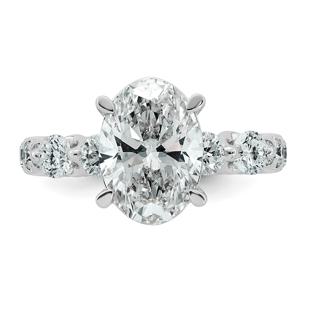 14kw 3 7/8ct Cert Oval Ctr Lab Grown Dia VS+ F+ w/ Round Sides Comp Ring