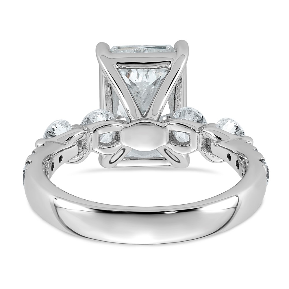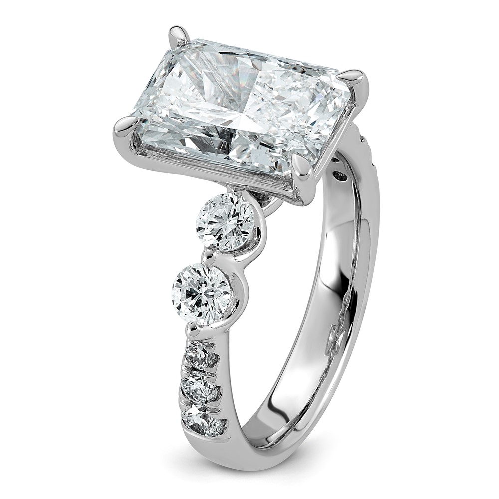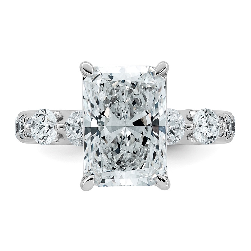 14k White Gold 4 7/8 carat Certified Lab Grown Diamond VS+ F+ Radiant Center with Round Sides Complete Ring