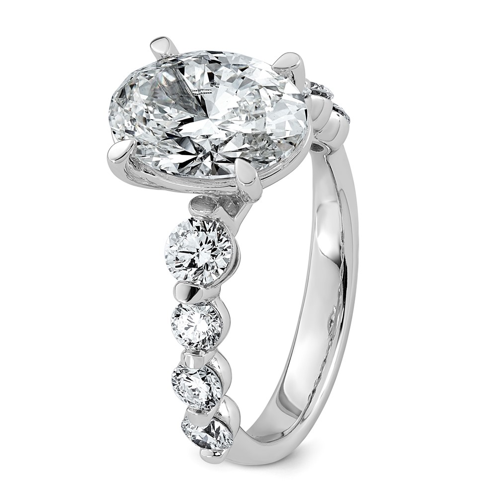 14kw 4ct Cert Oval Ctr Lab Grown Dia VS+ F+ w/ Round Sides Comp Ring
