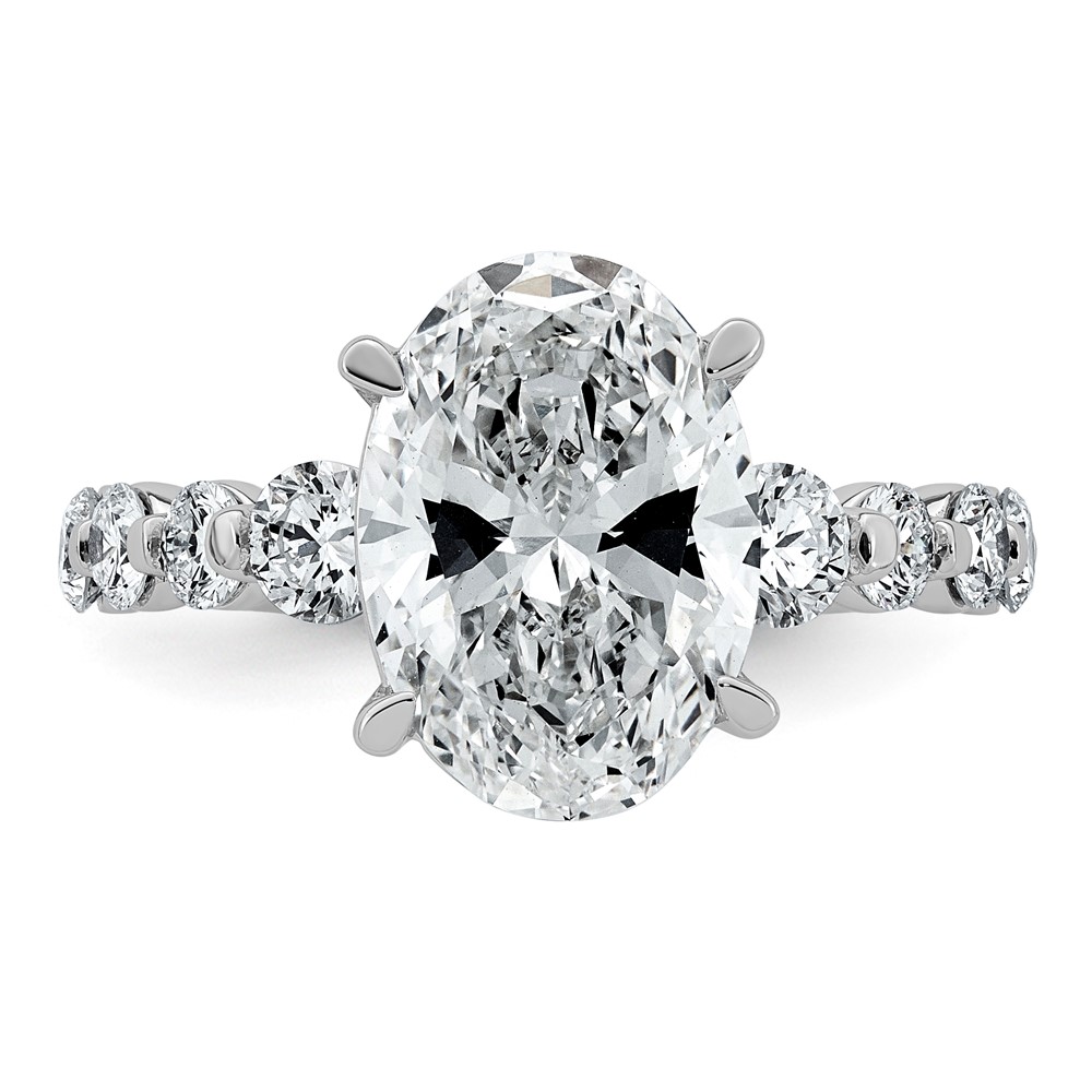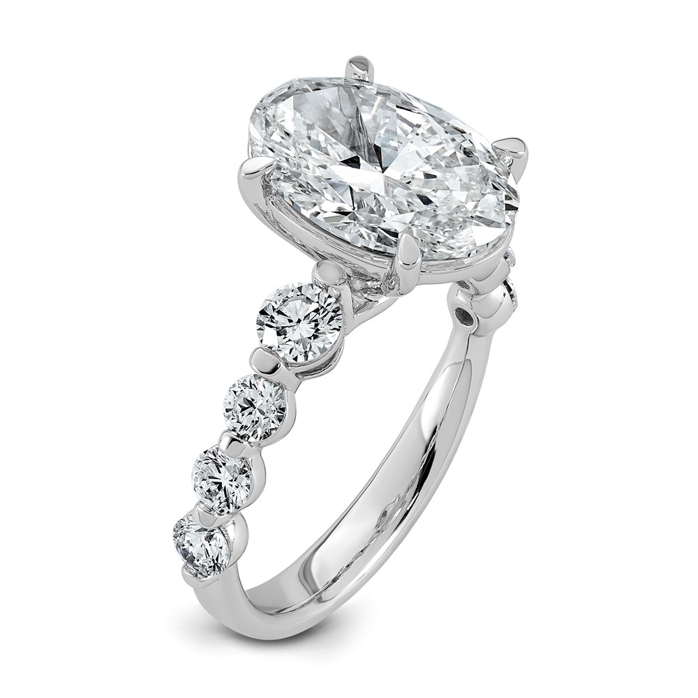 14k White Gold 2 5/8 carat Certified Lab Grown Diamond VS+ F+ Round Center with Oval Sides Complete Engagement Ring