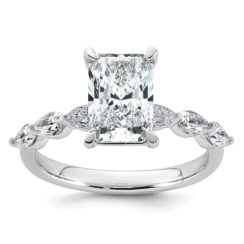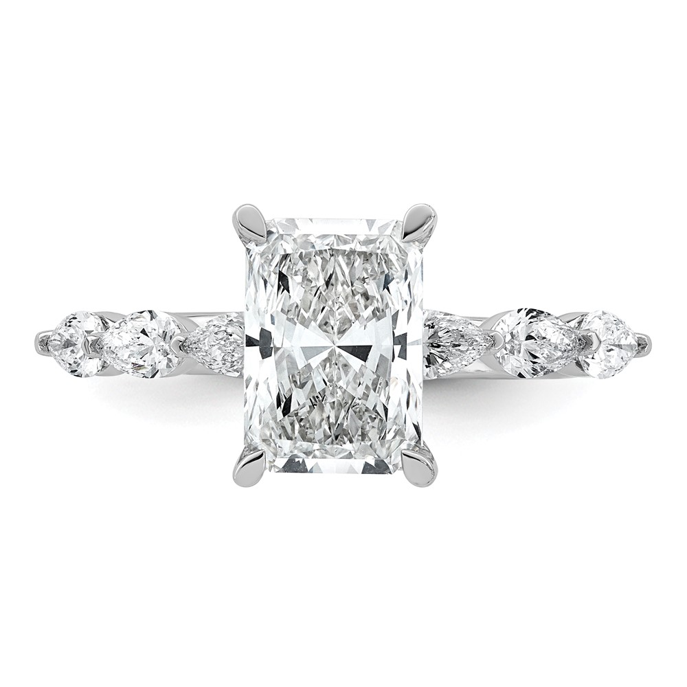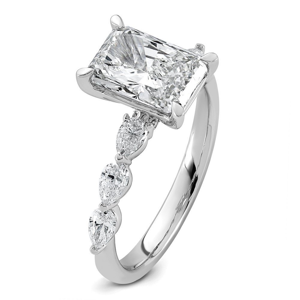 14kw 2 5/8ct Cert Radiant Ctr LabGrown Dia VS+ F+ w/ Pear Sides Comp Ring