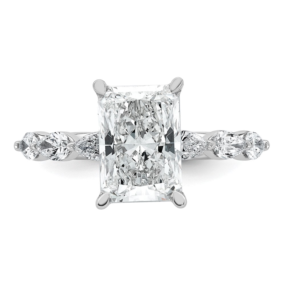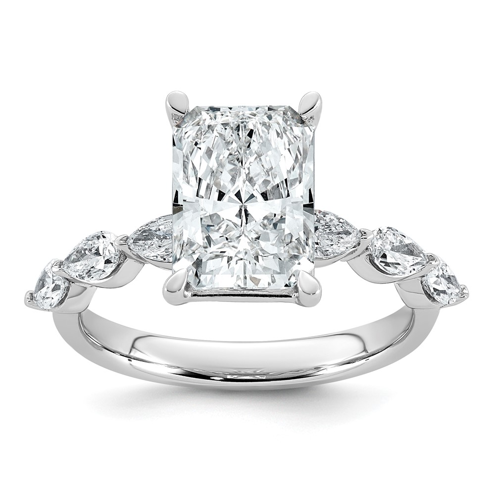 14kw 3 7/8ct Cert Radiant Ctr LabGrown Dia VS+ F+ w/ Pear Sides Comp Ring