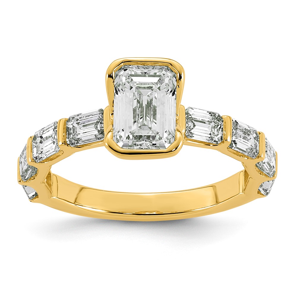 14ky 3 1/8ct Cert Emerald-cut Center Lab Grown Dia VS+ F+ Comp Ring