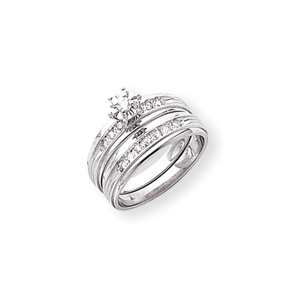 14k White Gold AA Quality Trio Engagement Ring