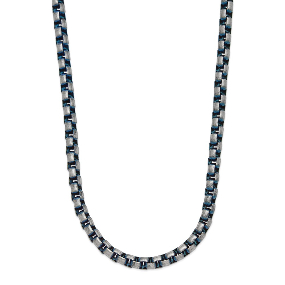 Chisel Stainless Steel Polished Blue IP-plated 6mm 22 inch Rolo Chain Necklace
