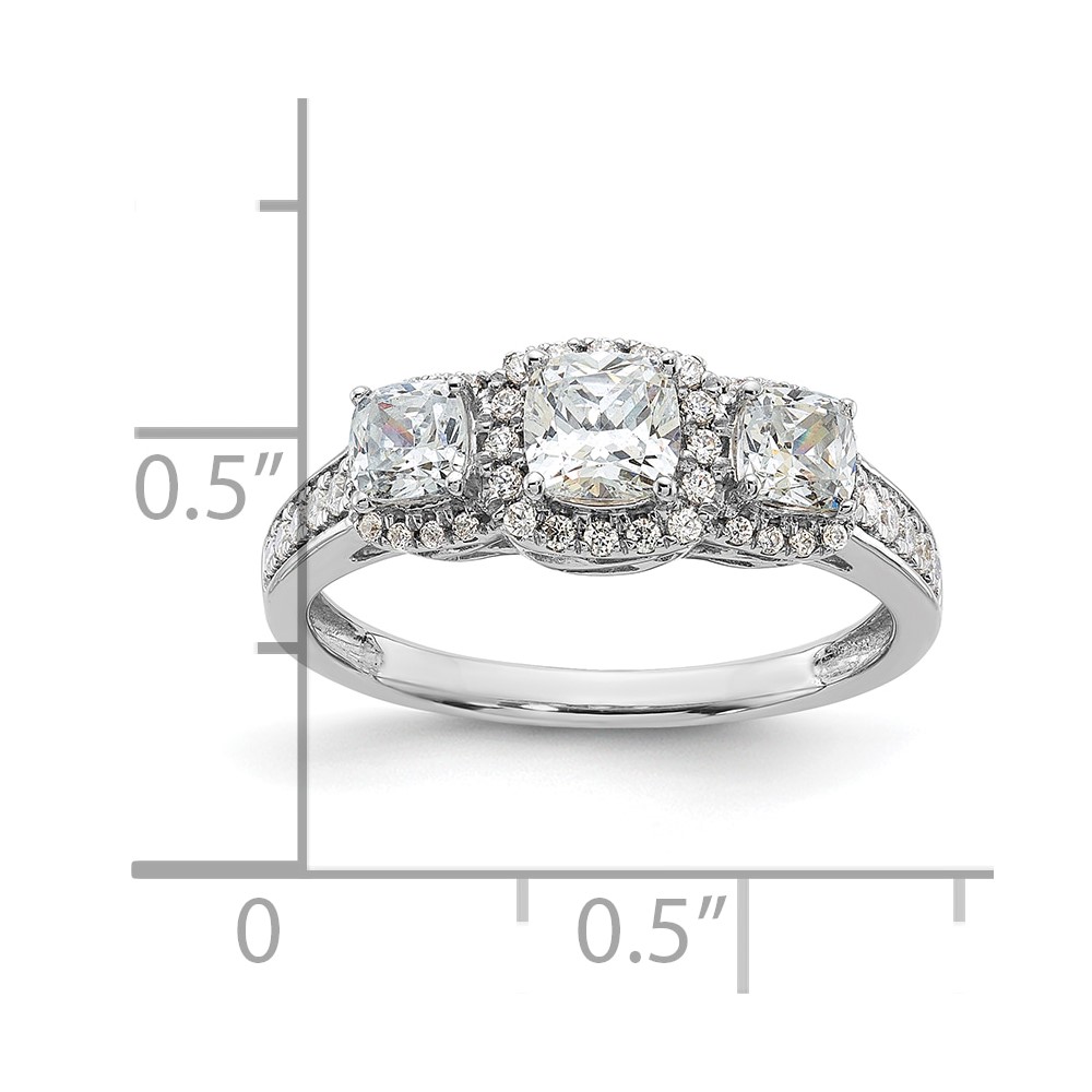 Sterling Silver & CZ 3-Stone Cushion Semi-mount Engagement Ring