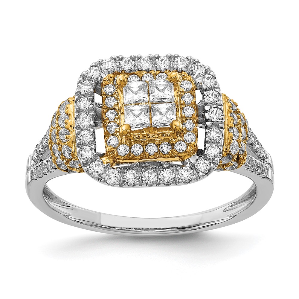 Sterling Silver w/GP & CZ Double Halo Semi-mount Engagement Ring