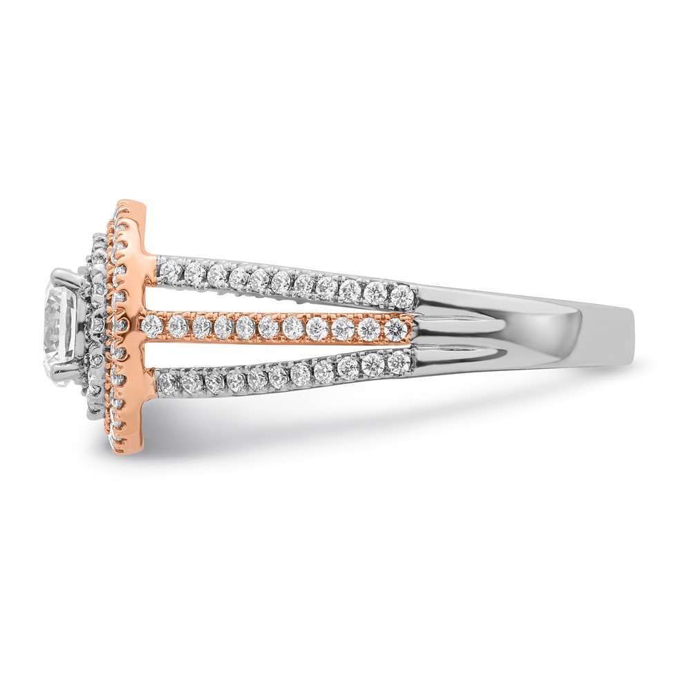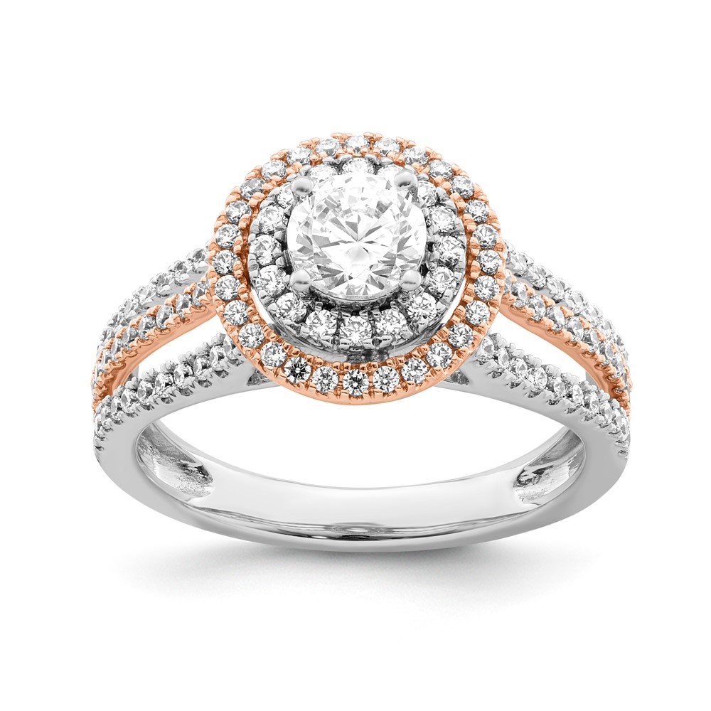Sterling Silver w/Rose Plate & CZ Double Halo Semi-mount Engagement Ring