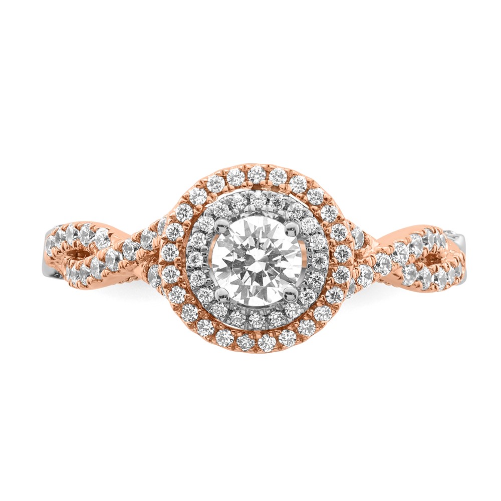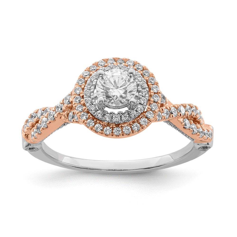 Sterling Silver w/Rose Plate CZ Double Halo Semi-mount Engagement Ring