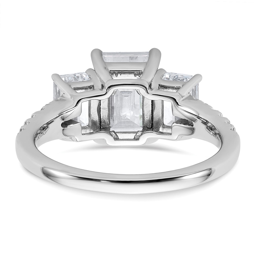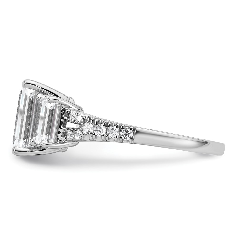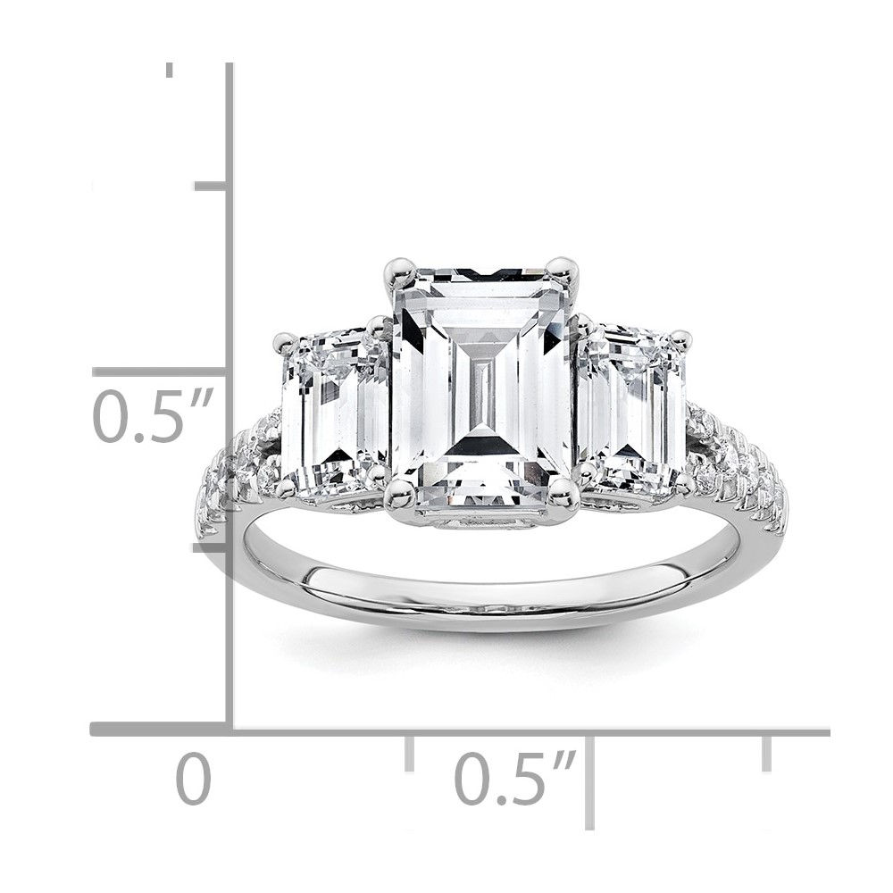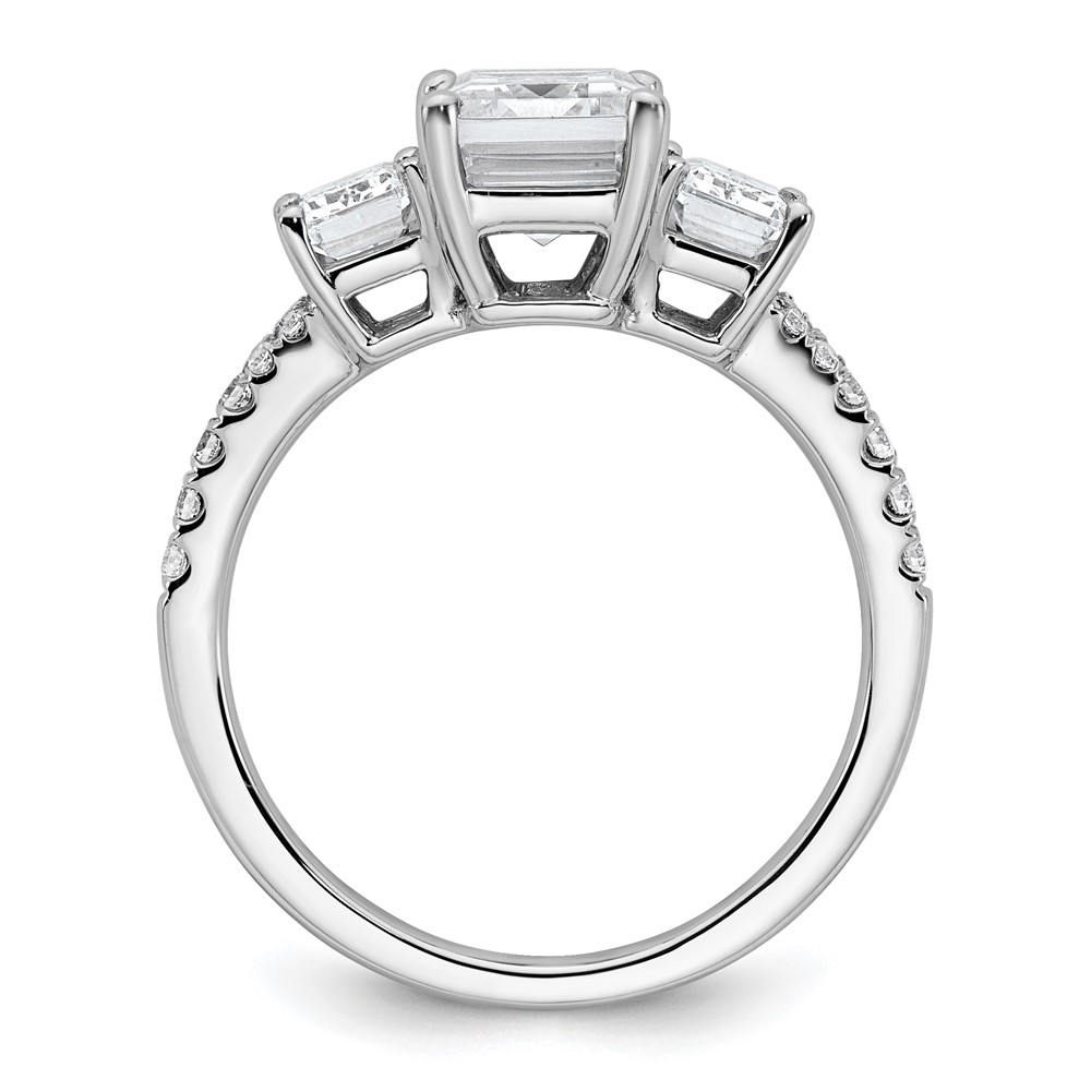 14k White Gold Semi-mount Diamond 3-stone Emerald Engagement Ring