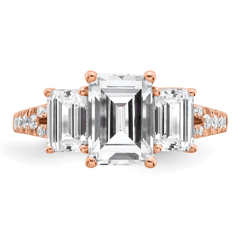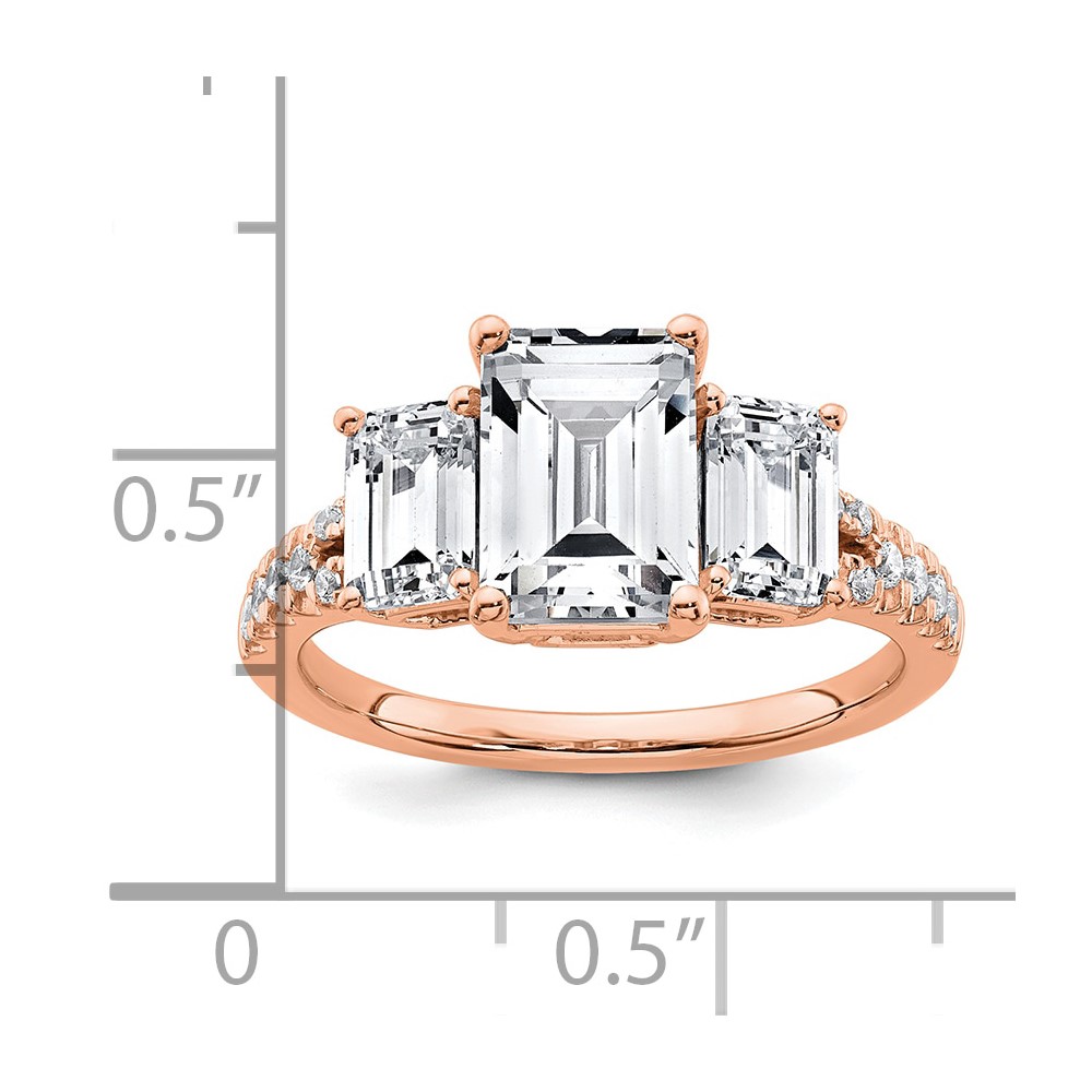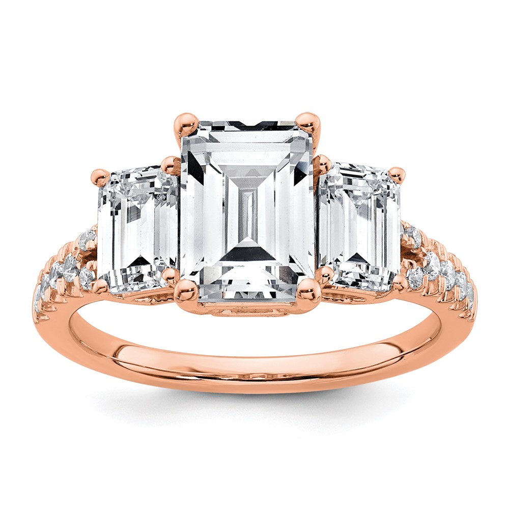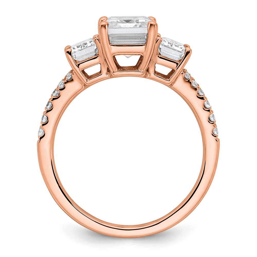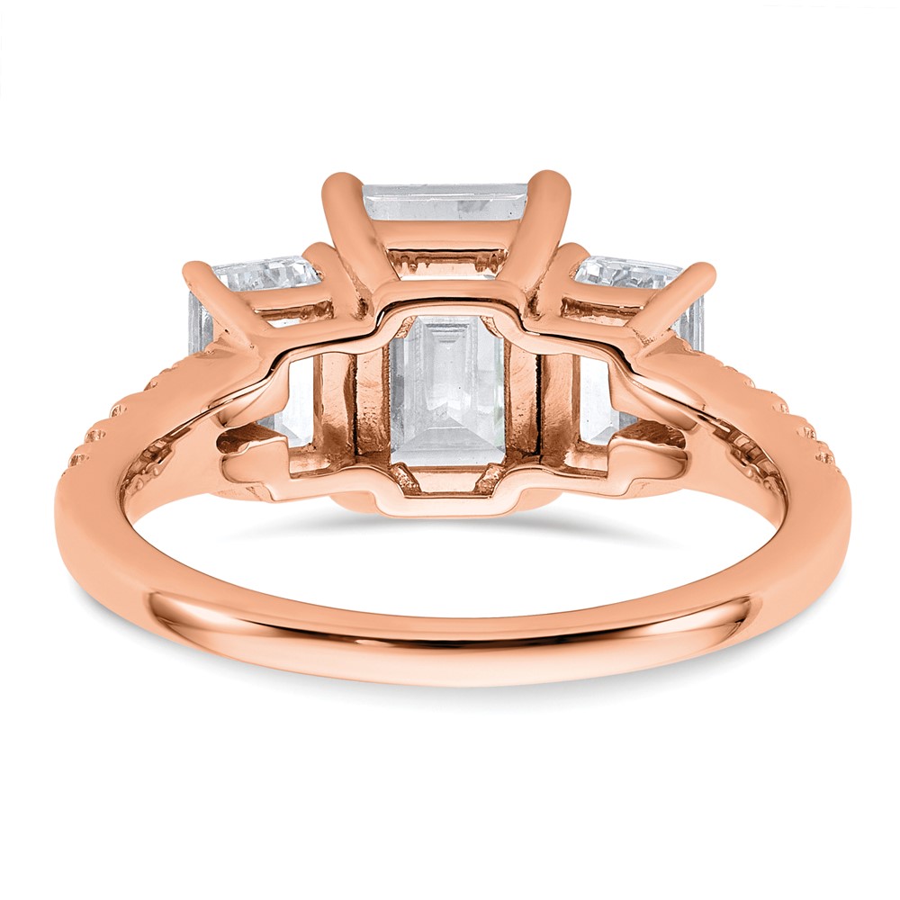14k Rose Gold Semi-mount Diamond 3-stone Emerald Engagement Ring
