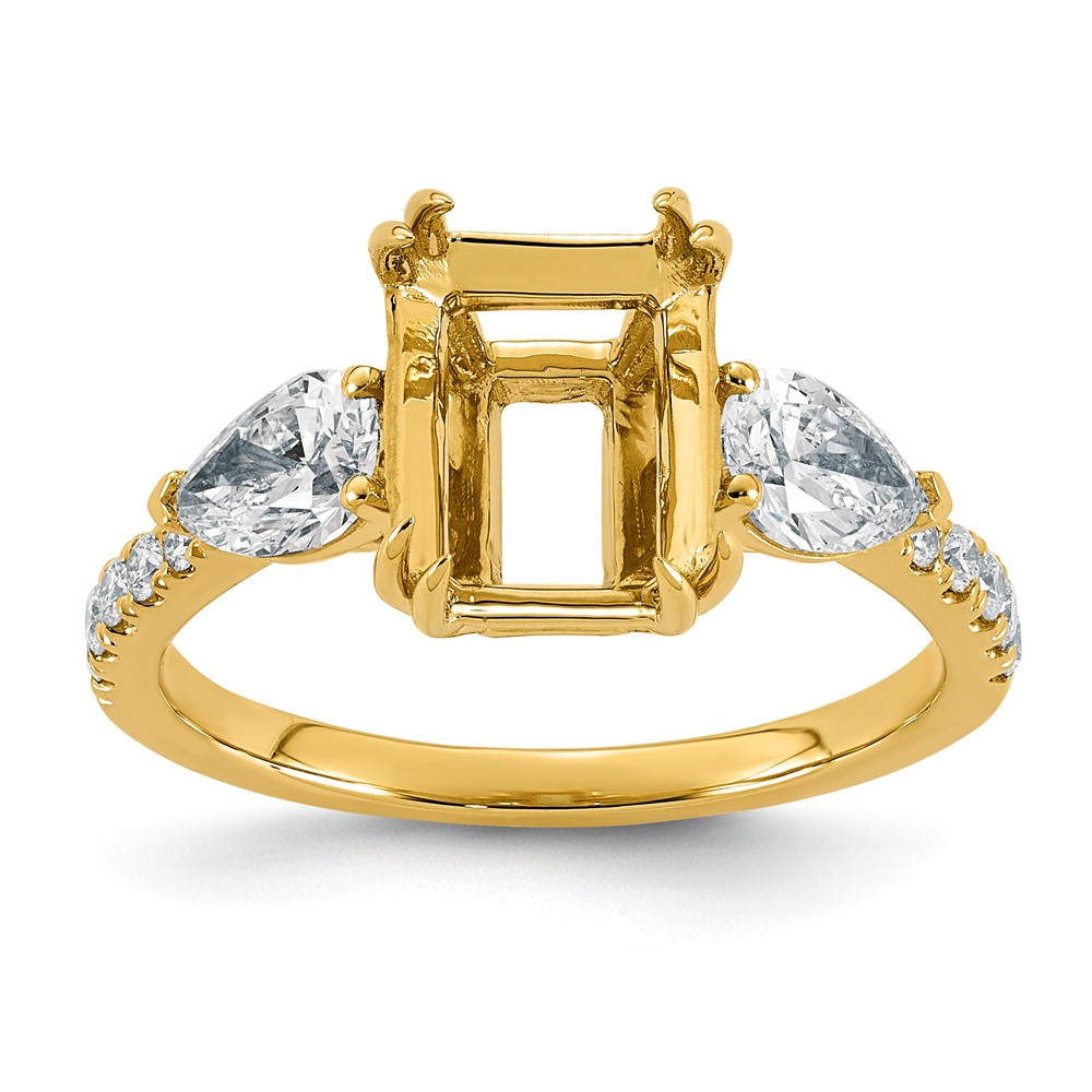 14k Three Stone Diamond Semi-Mount Including 2-3.2mm Side Stones Engagement Ring
