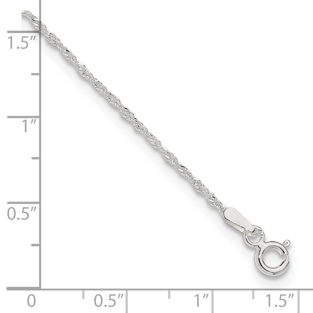 Sterling Silver 1.3mm Singapore Chain 9 inch Plus 1 inch Extender - Total 10 inch Anklet