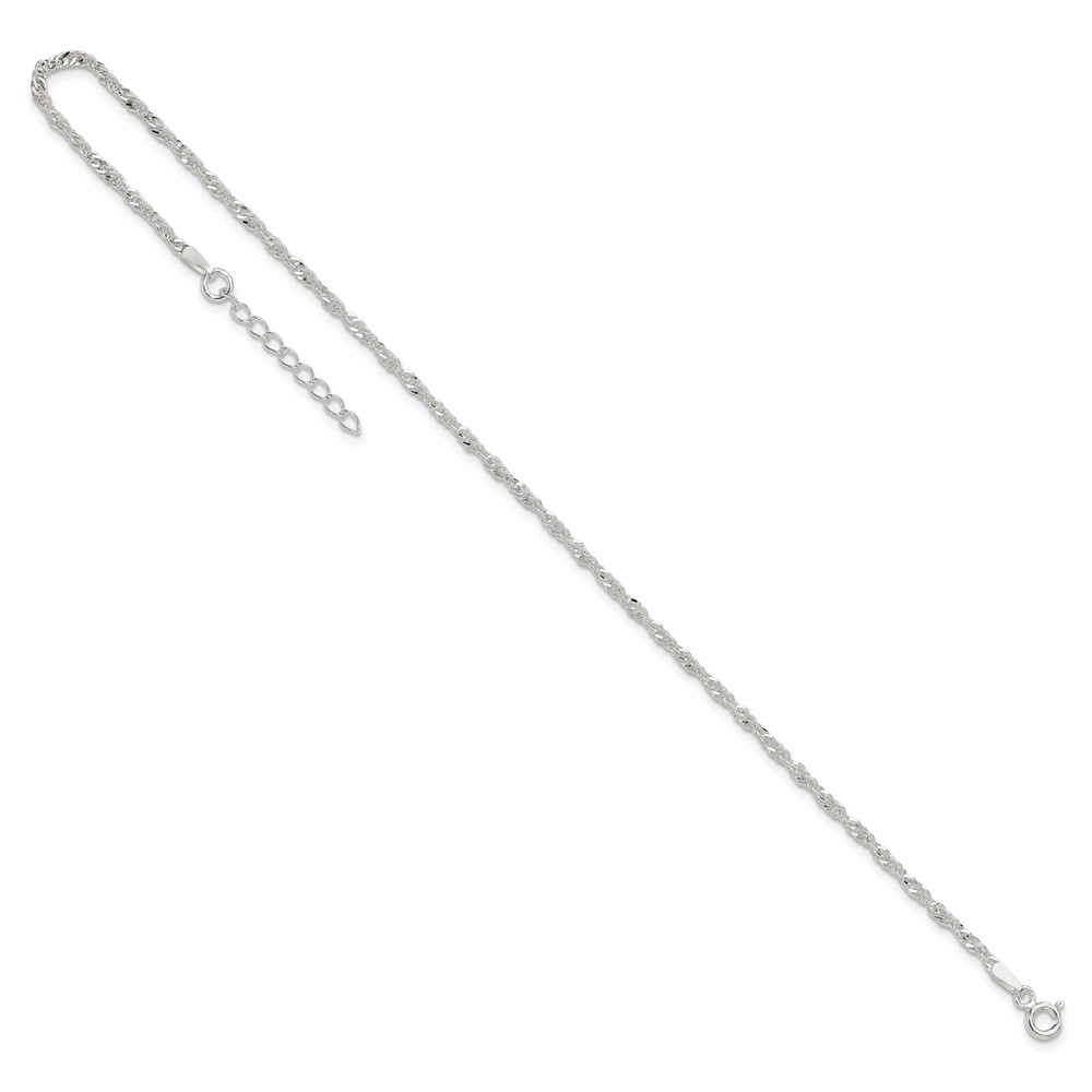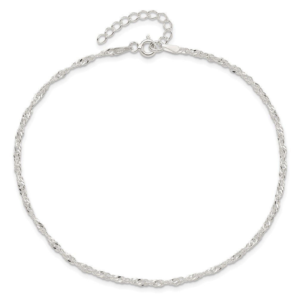 Sterling Silver 2mm Singapore Chain 9 inch Plus 1 inch Extender Chain - Total 10 inch Anklet