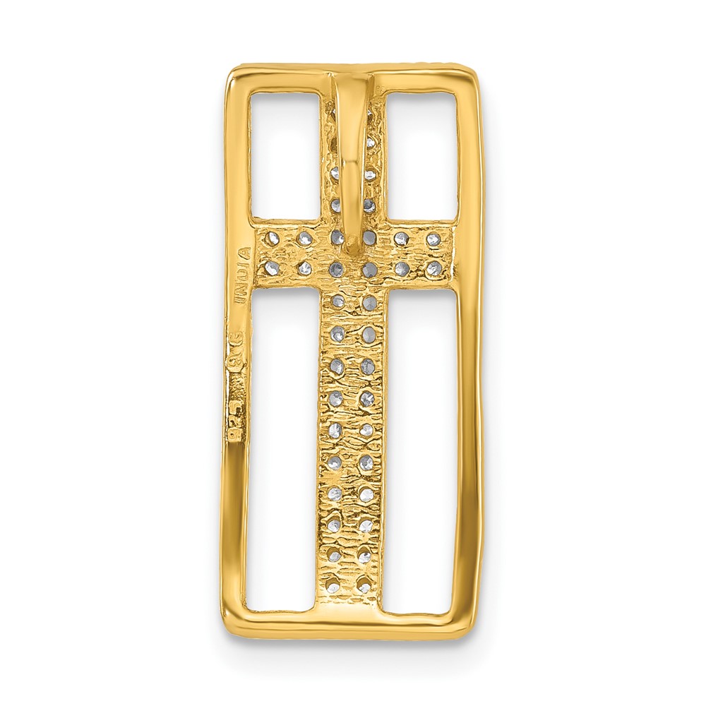 Sterling Silver Gold-tone Polished CZ Cross Slide