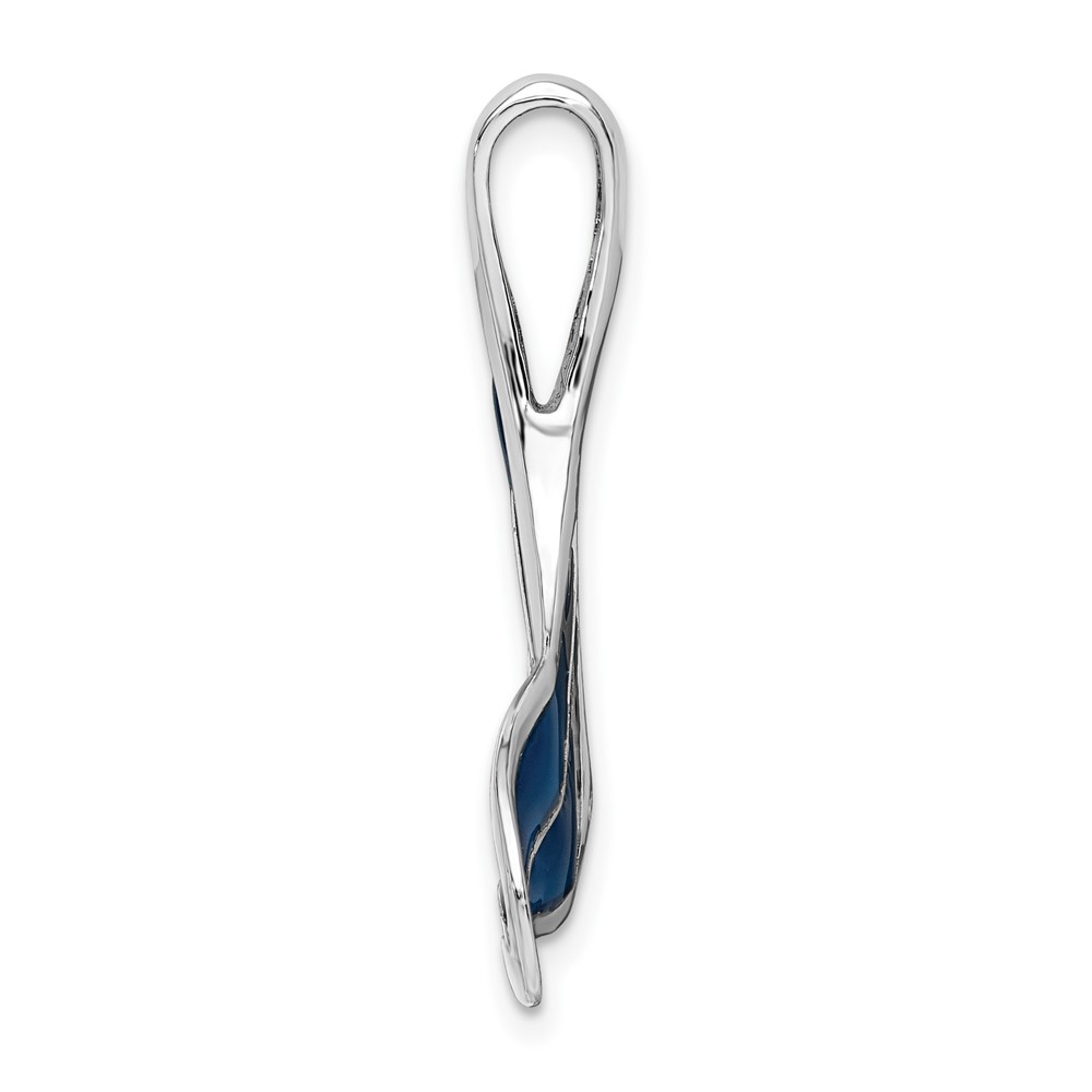 De-Ani Sterling Silver Rhodium-Plated Polished Enameled Blue Whale Tail Slide