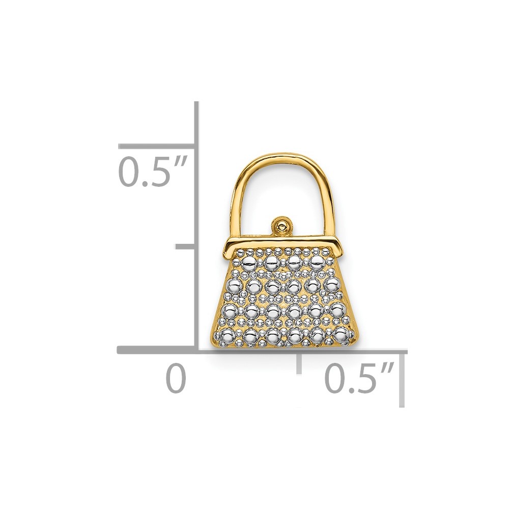 14K and White Rhodium Textured and Polished Purse Chain Slide